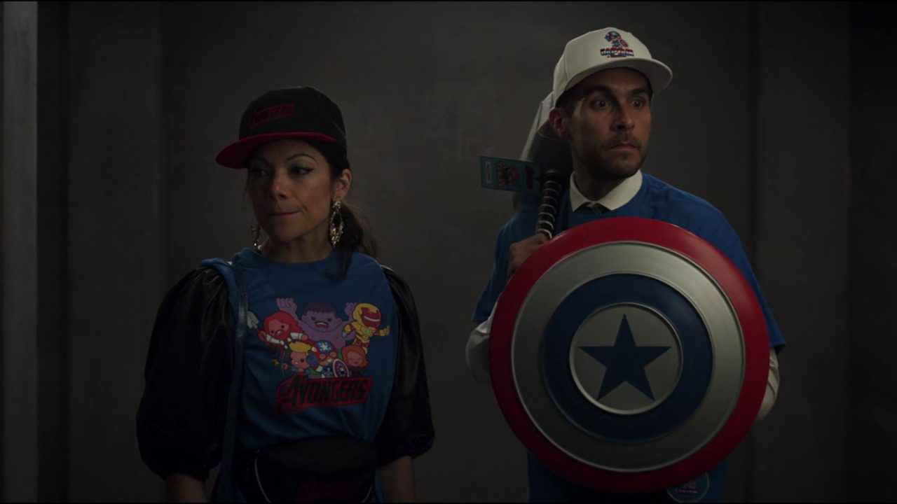 قبل از ملاقات با شخصیت مرموز دریپ بروکر (Drip Broker)، نیکی و پاگ مجبور میشوند محصولات مختلفی با محوریت انتقام جویان را خریداری کنند. بهدست گرفتن سپر کاپیتان آمریکا و میولنیر ثور توسط پاگ اشارهای است به یکی از محبوبترین سکانسهای فیلم Avengers: Endgame، زمانی که استیو راجرز با برداشتن میولنیر لایق بودن خود را ثابت کرده و مقابل تانوس قرار گرفت. ناگفته نماند رنگبندی سپر کاپیتان آمریکا نیز ایستراگی دیگر به کمیک The Avengers #4 (اولین حضور کاپیتان آمریکا) است.