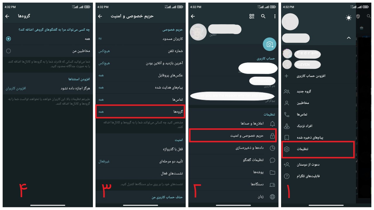 برای تنظیم کردن این قابلیت به قسمت تنظیمات > حریم خصوصی و امنیت > گروهها بروید.