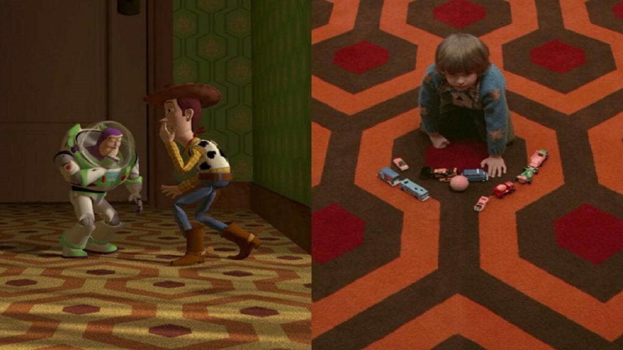 در سکانسی از قسمت اول مجموعه «Toy Story»، وودی و باز سعی میکنند از خانه سید بگریزند. موکت طبقه بالای این خانه که احتمالاً هرگز به آن دقت نکردهاید، ظاهری بسیار شبیه به موکت هتل معروف Overlook در فیلم «Shining» استنلی کوبریک فقید دارد. اشارات این مجموعه به شاهکار کوبریک اما به همینجا ختم نمیشود. در قسمت سوم، شماره پلاک کامیون آشغالبری که در ابتدای فیلم دیده میشود، «RM237» است. همچنین نام کاربری دوست اینترنتی تریکسی نیز «Velocistar237» است؛ هر دوی این موارد به اتاق شوم ۲۳۷ هتل Overlook در فیلم درخشش اشاره دارند. هنوز تمام نشده! یکی از دوربینهای مداربسته مهدکودک سانیساید در این فیلم، دارای برچسبی با عبارت «OVERLOOK237» است!