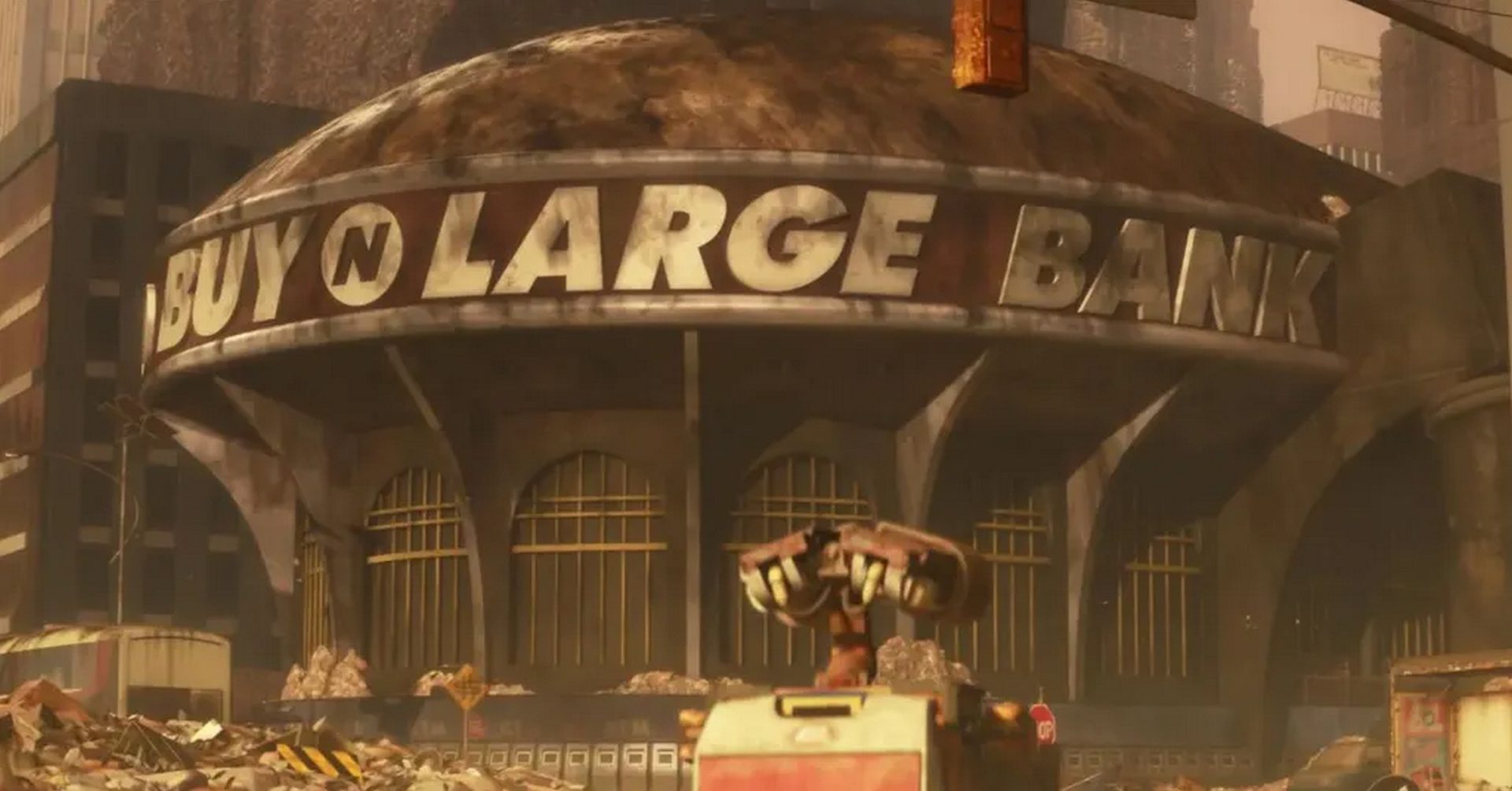 در Wall-E، کمپانی Buy-n-Large (BNL) بر دنیا مسلط شده و انسانها را به افرادی بیهویت و مصرفگرا تبدیل کرده است. نگرونی معتقد است که این سلطه فقط با استفاده از جادوی فیلم Brave ممکن شده. جادویی که ابتدا به اشیا و حیوانات حیات بخشید و سپس در فناوریهای پیشرفته و تسخیر زمین توسط هوش مصنوعی تأثیر گذاشت. Wall-E تصویری از آیندهای تاریک را ارائه میدهد که در آن زمین به ویرانهای تبدیل شده و انسانها برای بقا به فضا پناه بردهاند.
