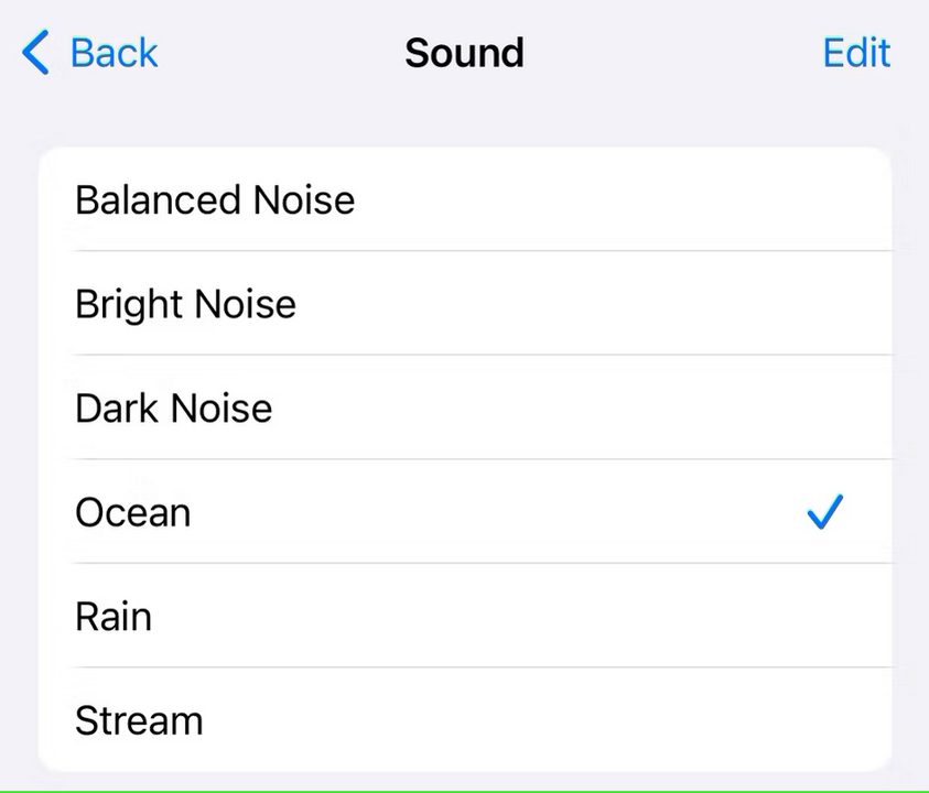 به تنظیمات بروید، سپس به بخش دسترسی (Accessibility) بروید و از آنجا به بخش صدا/تصویر (Audio/Visual) بروید تا قابلیت صداهای پسزمینه را فعال کنید. شش صدا برای انتخاب وجود دارد، از جمله سه نوع صدای نویز سفید، اقیانوس، باران خفیف و جریان آب.
