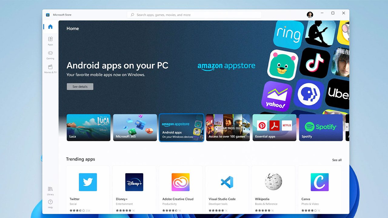 باید قبول کنیم که در حال حاضر بخش اعظمی از جامعه مخاطبان را موبایل گیمرها تشکیل میدهند. حالا ویندوز 11 این قابلیت را فراهم میکند تا خیلی از بازیهای موبایلی را بتوانید روی رایانههای شخصی خودتان بازی کنید. این مهم با پشتیبانی از سیستمعاملی اندروید امکانپذیر شده است.تا قبل از این مجبور بودید تا از برنامههای واسطهای مثل Bluestacks، برای اجرای برنامههای اندرویدی روی ویندوز، کمک بگیریم. البته قرارداد مایکروسافت برای تامین برنامههای اندروید با شرکت Amazon و فروشگاهش نوشته شده است. البته به دلیل اوپنسورس بودن اندروید انتظار این را داریم که به راحتی بتوانیم از راههای دیگری به فروشگاه گوگل دسترسی داشته باشیم.