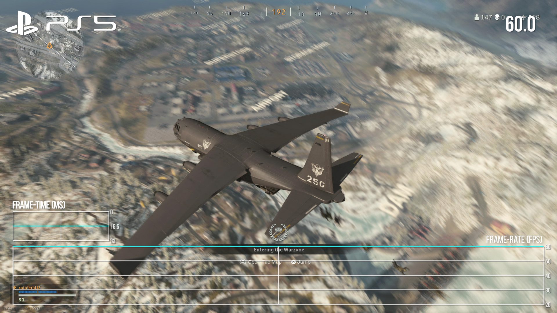 دیجیتال فاندری نسخهی پلیاستیشن 5 Call of Duty: Warzone را هم مورد بررسی قرار داد تا ببیند این بازی روی پرچمدار جدید سونی چنین عملکردی دارد یا خیر. طبق بررسی صورت گرفته، نسخهی مزبور روی نرخ فریم ۶۰ قفل شده و تغییر حالت بین Performance و Quality هیچ بهبودی در نرخ فریم به وجود نمیآورد. در ادامه میتوانید تصویر تهیه شده از عملکرد نسخهی پلیاستیشن 5 را مشاهده کنید: