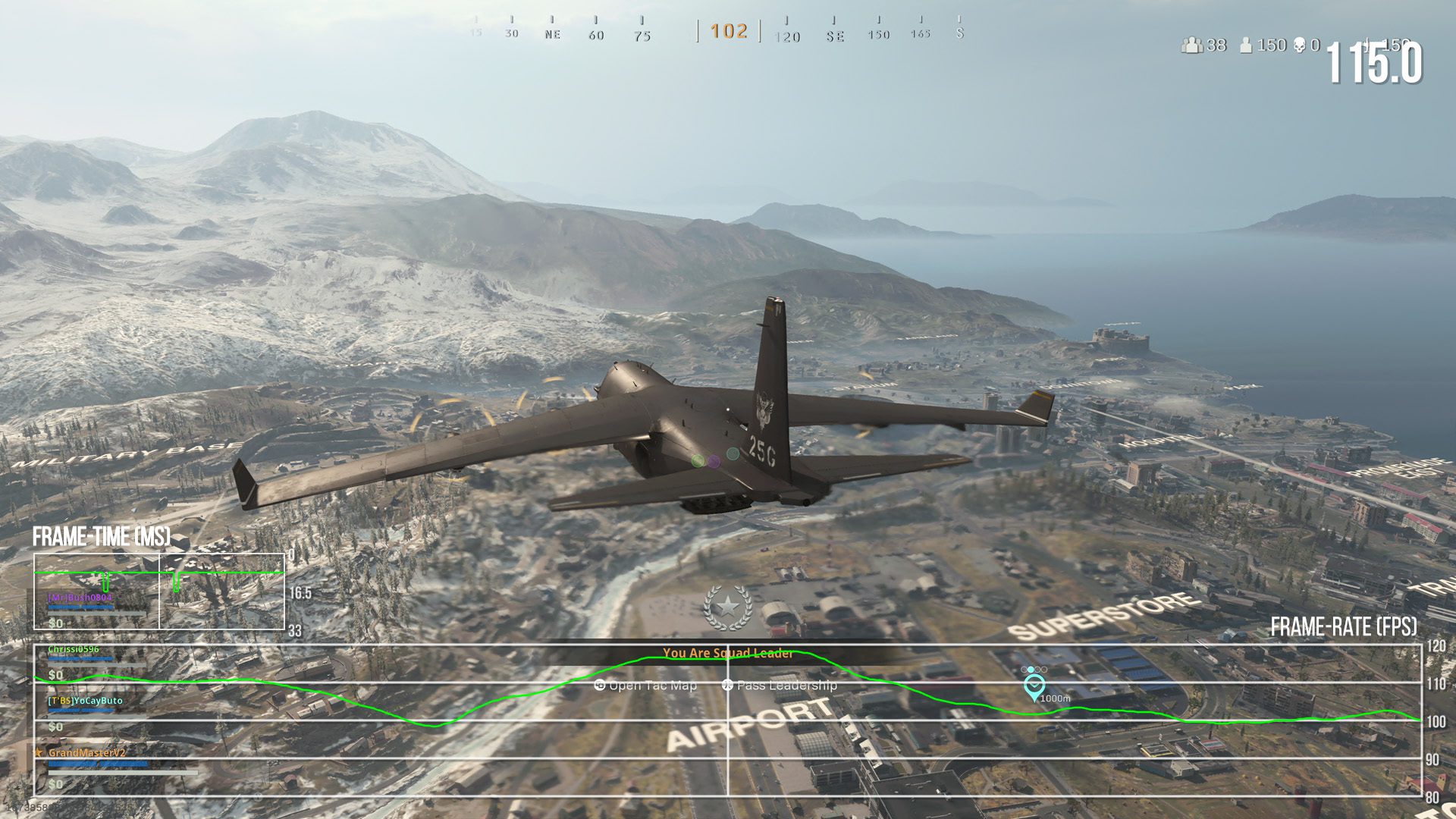 وب سایت دیجیتال فاندری که میخواست نسبت به ادعای مطرحشده توسط کاربران و همچنین فروشگاه مایکروسافت اطمینان کامل پیدا کند، نسخهی ایکسباکس سری ایکس Call of Duty: Warzone را مورد بررسی قرار داد و متوجه شد چنین موضوعی صحت دارد. البته نرخ فریم ثبات نداشته و بین رقمهای ۱۱۰ الی ۱۲۰ در حال تغییر است. در ادامه میتوانید تصویر تهیه شده از عملکرد نسخهی سری ایکس را مشاهده کنید: