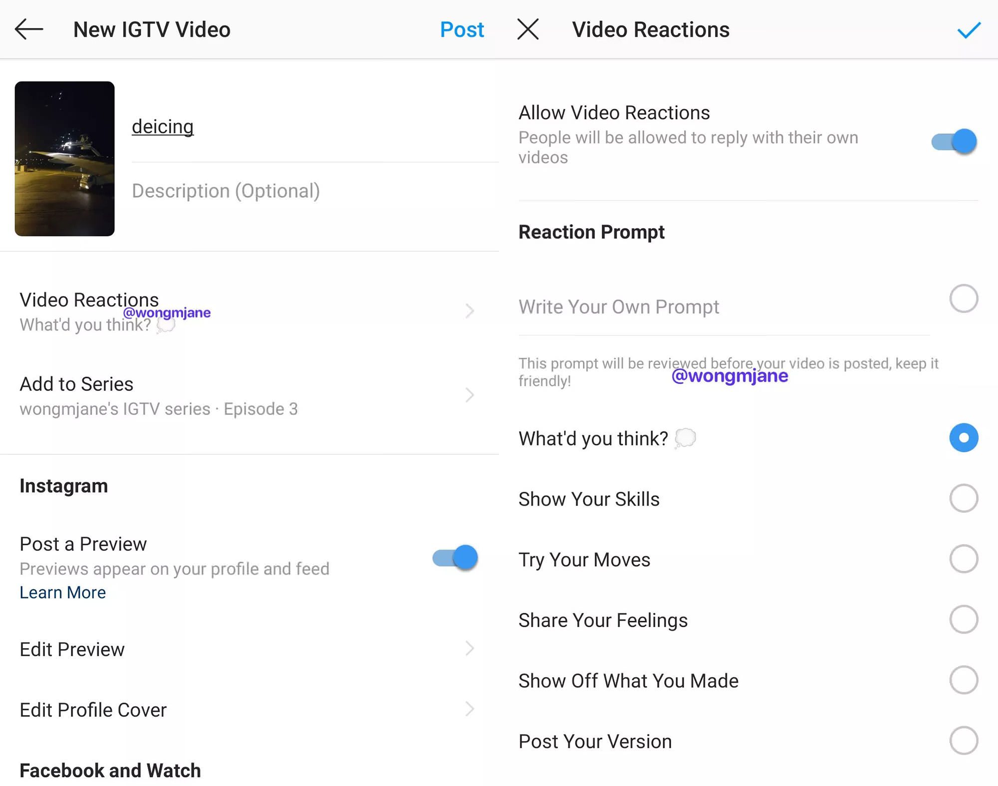 امکان پاسخدهی به IGTV با ارسال ویدیو