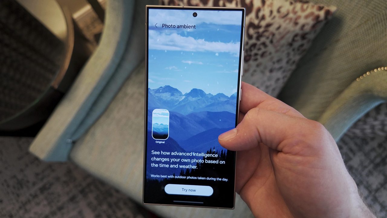 یک قابلیت جذاب دیگر در One UI 6.1 که به تصویر زمینه مربوط است، تصاویر زمینه Photo ambient نام دارد. این تصویر زمینه بسیار نوآورانهتر و جالبتر از تصاویر زمینه عادی است چرا که اطلاعات آب و هوا را روی تصویر زمینهی انتخابی شما اعمال میکند. در واقع نحوهی کار این قابلیت به این صورت است که شما یک تصویر یا گرافیک به گوشی سامسونگ خود میدهید و سپس گوشی آن را با تصاویر آب و هوایی مزین میکند.