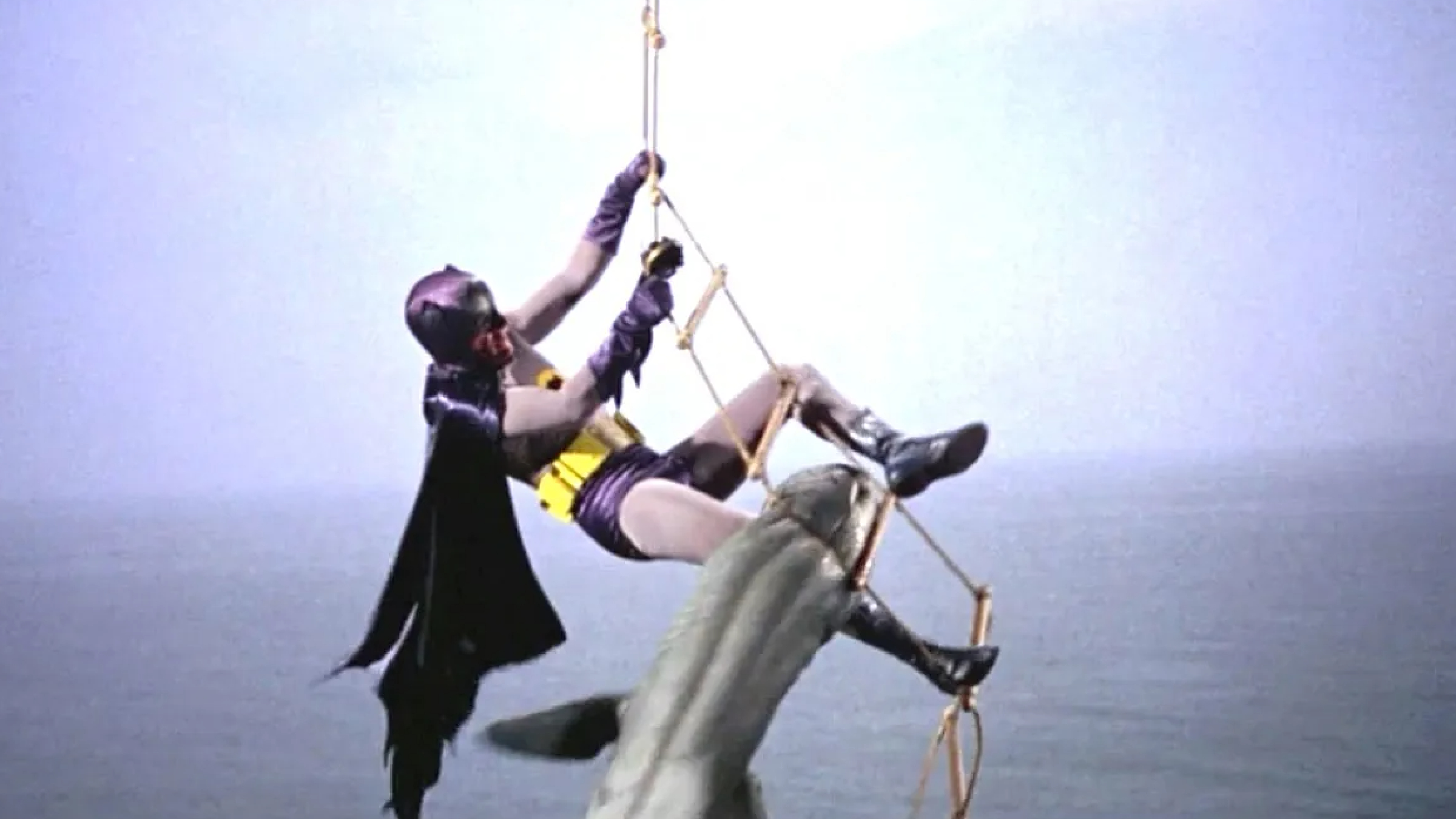 فیلم و سریال بتمن در دهه ۶۰ میلادی به خاطر رویکرد خانوادگی و مناسب برای کودکان مورد تحسین قرار گرفتند و شاید بگویید بتمن آدام وست (Adam West) یک اثر کمدی بود و نباید درباره آن خیلی سخت گرفت. با این حال، حتی در آن فضا هم برخی چیزها قابل هضم نیستند. صحنهای که بتمن از نردبان هلیکوپتر آویزان است و کوسهای پلاستیکی پایش را گاز میگیرد، به خودی خود عجیب است، اما لحظهای که او اسپری خفاشی دافع کوسه (Shark Repellent Bat-Spray) را بیرون میکشد، تیر خلاصی به منطق در تمام فیلمهای سینمایی دی سی زد. این سطح از استفاده از گجتهای بیمورد که صرفا داستان فیلم را جلو ببرند، باعث شد تا سالها بعد بسیاری از مردم نتوانند بتمن را به عنوان یک شخصیت جدی و تاریک بپذیرند. این اسپری، نماد دوران مسخرهبازیهای گاتهام شد!
