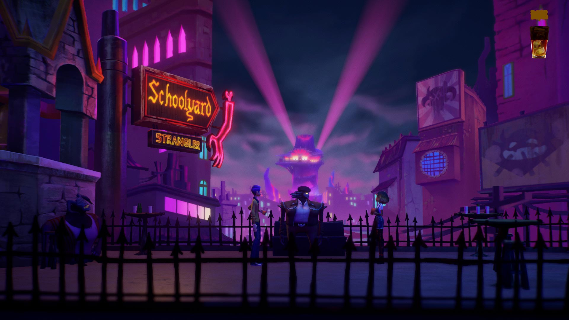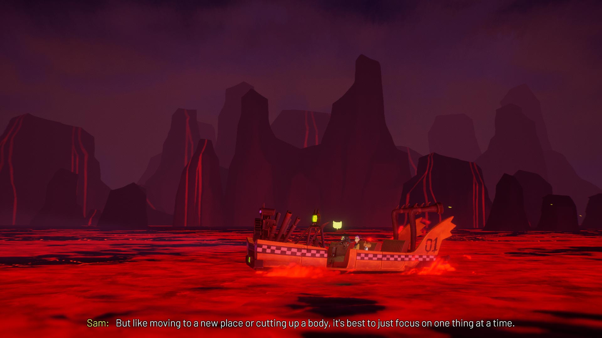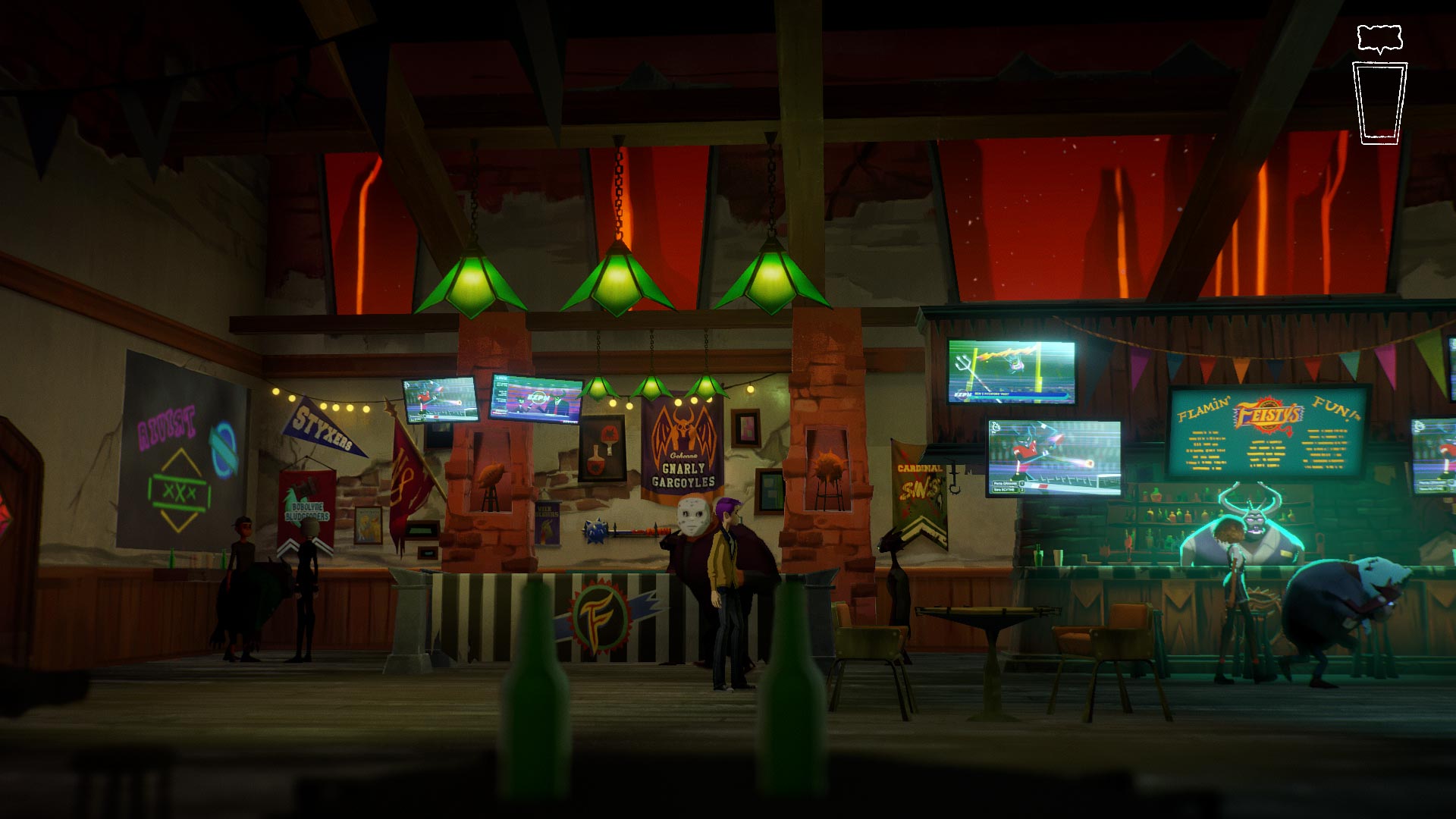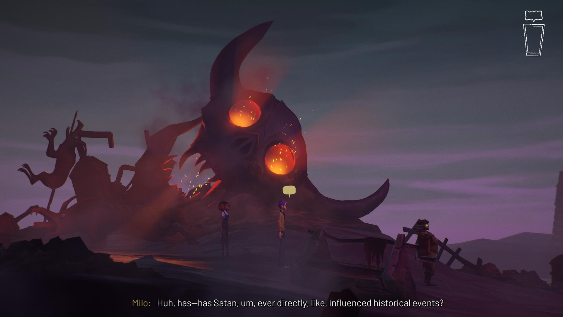 اینجاست که یکی از مکانیکهای خاص بازی به کار میآید. با سر زدن به میخانهها میتوانید یک نوشیدنی جهنمی سفارش دهید. لیوان نوشیدنی را میتوانید تا مقطعی مشخص همراه خود داشته باشید و از آن در حین گفتگوها بهره ببرید، به این صورت که با نوشیدن یک جرعه کاراکتر کمی گیج میشود، اما گزینهی جدیدی در دیالوگها پدیدار میگردد که برخی اوقات برای رسیدن به هدف به کارتان میآید. البته این مکانیک برخلاف انتظار اصلا کاربردی نیست و با کمترین استفادهی ممکن هم میتوان بازی را به اتمام رساند. چند مینیگیم جالب هم در بازی وجود دارد که با وجود زمان کوتاه، مقداری سرحالتان میآورند تا راحتتر بازی را ادامه دهید. بهترین این مینیگیمها در پایان بازی و رقابتتان با شیطان بر سر نوشیدن بیشتر است که مینیگیم راحتی هم نیست و اگر تمرکز کافی نداشته باشید، ممکن است حسابی روی اعصاب برود. استودیوی Night Schools برای موسیقی باز هم با scntfc آهنگساز آمریکایی همکاری کرده است که دومین کار مشترکشان پس از Oxenfree است. در اثر قبلی تم موسیقی بیشتر سعی در القای اضطراب و حس رمزآلود داشت، اما اینجا هیجان بیشتری دارد و از سازهای مخصوص آهنگهای مذهبی هم بهره میبرد تا به فضاسازی کمک کند که الحق در این کار موفق است.