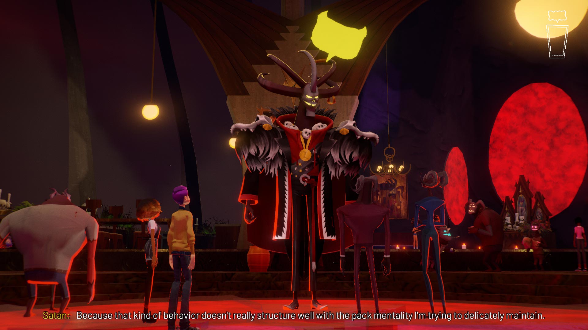 کاراکترهای عیب و جالب در بازی زیاد است؛ فردی که روی زمین یک قاتل سریالی بوده و حداقل ده نفر را کشته است، اما در جهنم یک آدم خوشرفتار و اهل رفاقت به حساب میآید یا یکی از برادران شیطان به نام Asmodeus که سر خود را با گرداندن یک باشگاه شبانه گرم میکند، اما در واقع به خاطر جدایی همسرش لطمه خورده است. در بین تمام شخصیتهای بازی اما قطعا شخص شیطان بیشتر از همه خودنمایی میکند؛ کسی که روزی والامقامترین فرشته بود، پس از تبعید به جهنم احساس سرخوردگی میکند و به عیش و نوش روی آورده است. جناب شیطان چندین اسم و لقب هم دارد؛ یکی شیطان صدایش میکند، دیگری به او لوسیفر میگوید و اگر خیلی خودمانی باشند، با اسم سابق خطابش میکنند یا به او «لوک» میگویند! مکمل جذابیت شخصیت شیطان هم چیزی نیست جز صداپیشگی عالی Dave Fennoy که صدایش در قالب نقش لی در عنوان The Walking Dead تلتیل به این راحتی از یاد نمیرود. به جز فنوی، صداپیشگان مطرح دیگری همچون اشلی برچ (کلویی پرایس در Life is Strange و الوی در Horizon Zero Dawn) و ارین ایوت (سفید برفی در The Wolf Among Us) حضور دارند که با کار عالی خود، صداپیشگی را به یکی از نقاط قوت اصلی بازی Afterparty تبدیل میکنند. خیلی خلاصه در وصف فضای بازی و دنیایش بگویم، انگار نویسندگی را به یکی مثل ست مکفارلن یا ریکی جرویس سپردهاند