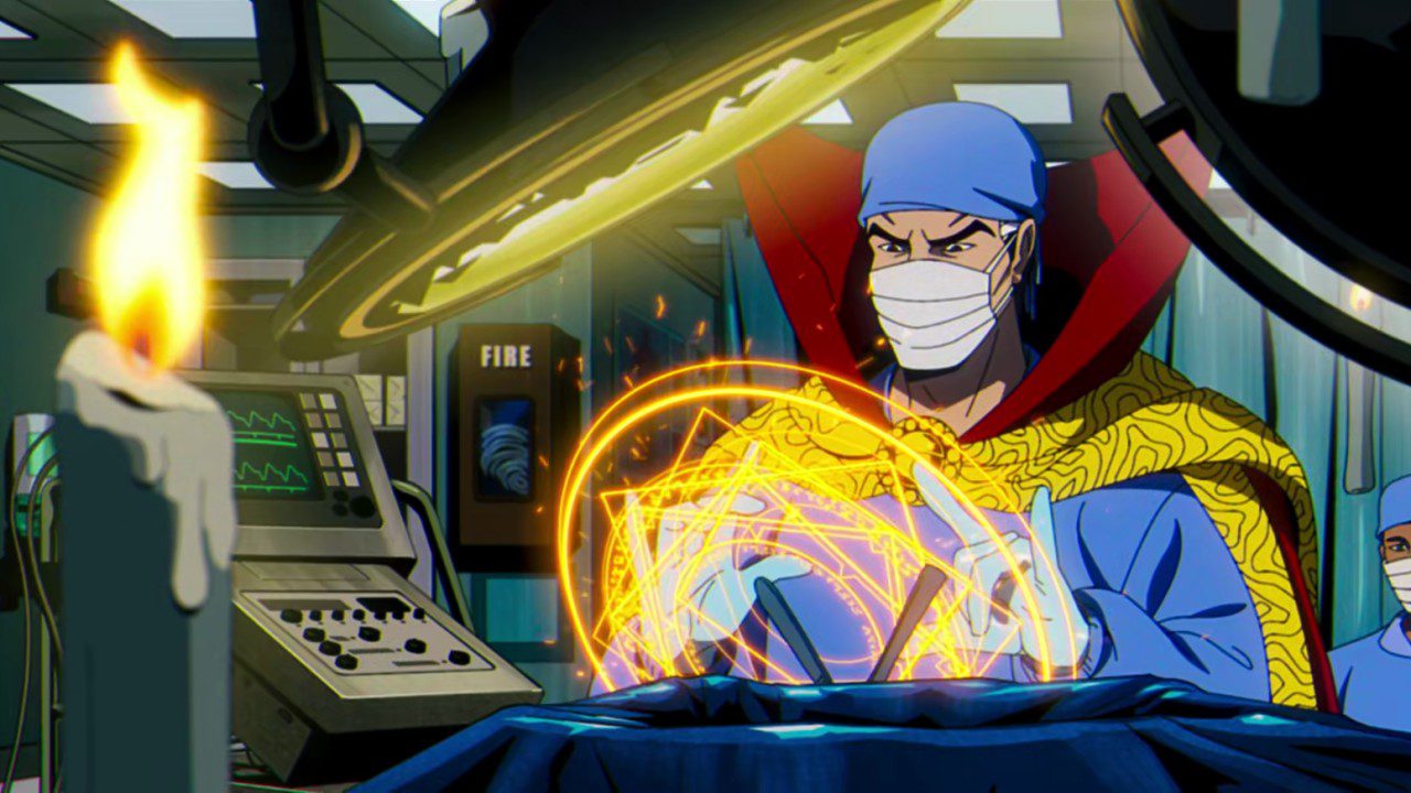 یکی دیگر از کمئوها، دکتر استیون استرنج بود که بهخاطر از کار افتادن دستگاهها، از قدرتهایش برای نجات دادن جان بیماران استفاده میکرد. نکته جالب این سکانس نگه داشتن تیغ جراحی با استفاده از جادو بود که نشان میدهد دستان استرنج همچنان بهبود نیافته است. جادوگر اعظم دنیای مارول قبلا در یک قسمت از سریال X-Men: The Animated Series، یک قسمت از سریال Spider-Man: The Animated Series و یک قسمت از سریال The Incredible Hulk حضور داشته است. این کمئوها اغلب درباره داستان پیشینه و تقابلش با شخصیتهایی همچون بارون موردو و دورمامو بوده است تا کسانی که کمیک نمیخواندند بتوانند بیشتر با او آشنا شوند.