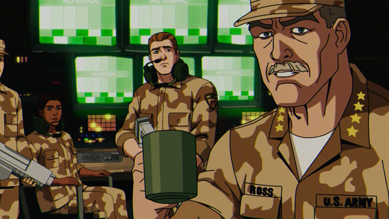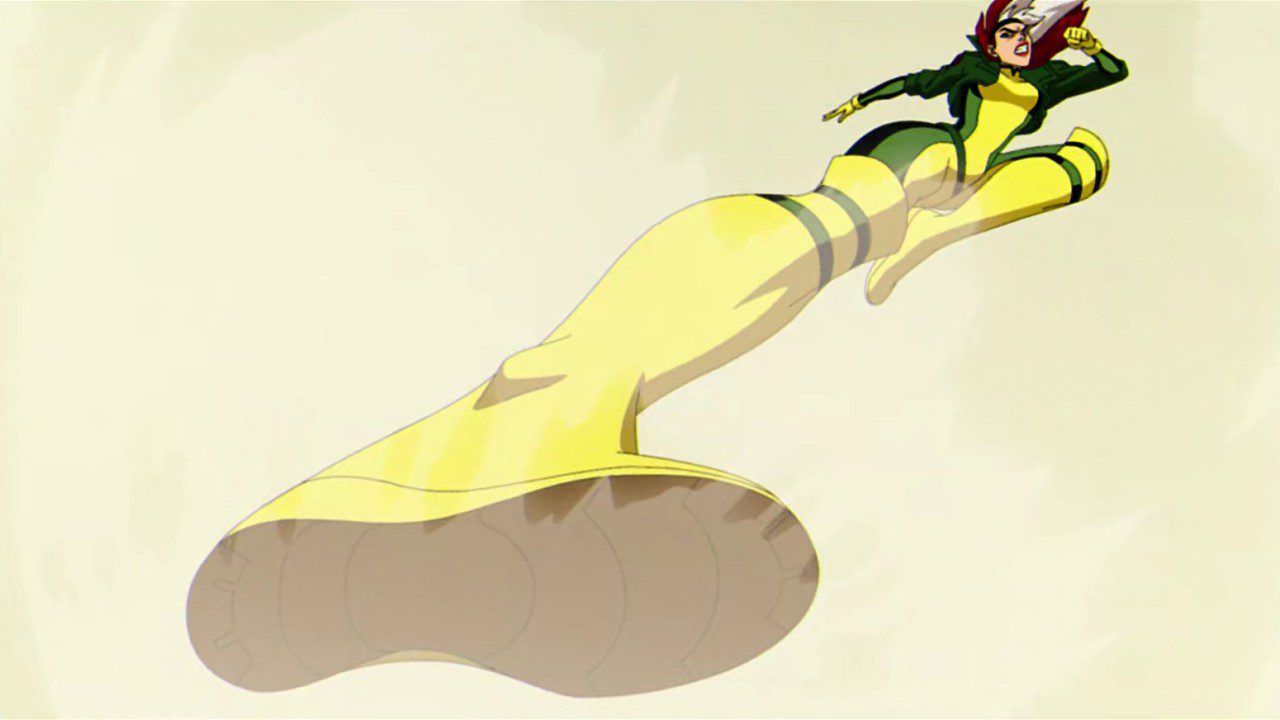 جستجوی روگ برای پیدا کردن مسببین فاجعه جنوشا، او را به همان مرکز مخفی هدایت میکند که قبلا توسط کاپیتان آمریکا کشف شده است. حضور افتخاری اولین انتقامجو قبلا توسط استودیو مارول در یک ویدیو تبلیغاتی لو رفته بود، بههمین خاطر دیدن طرفداران انتظار دیدن او را داشتند. جالب است بدانید که درست مثل سریال مولتیورسی What If، استیو راجرز اینجا هم توسط آقای جاش کیتون (Josh Keaton)، صداپیشه اسپایدرمن جان گرفته است. این یعنی او در تمامی پروژههای انیمیشنی مارول ایفاگر نقش کاپیتان آمریکا است. از دیگر نکات جذاب این سکانس نیز میتوان به پلاک موتورسیکلت او (AVN-A10) اشاره کرد که ایستراگی از کمیک Avengers #10 است (اولین حضور شخصیت روگ در کمیکها).