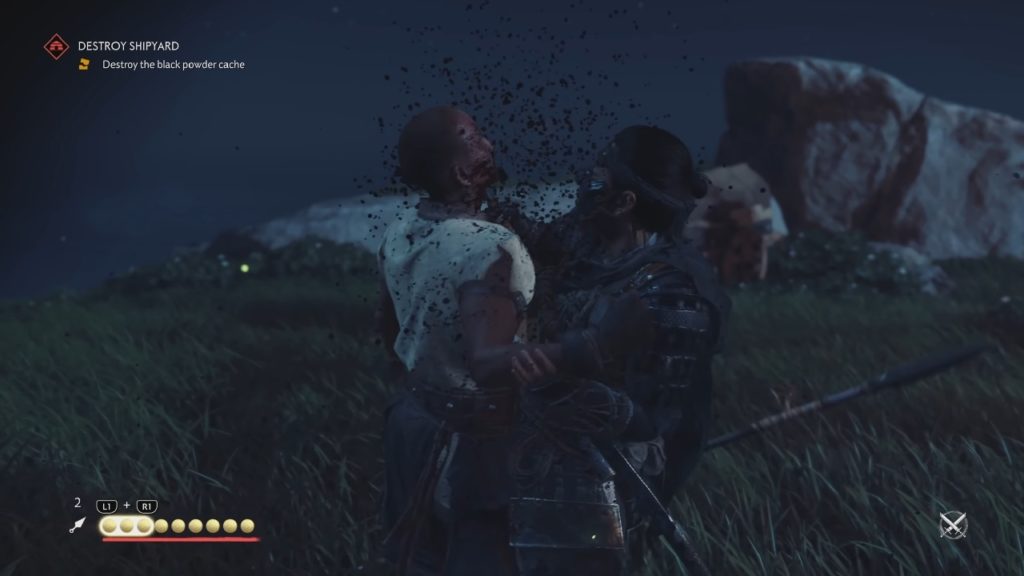 با دیدن پیش نمایش بازی Ghost of Tsushima متوجه شدیم که جین در راه شبح، ابزار زیادی در اختیار خود دارد که به بررسی آنها میپردازیم. او با پرتاب کردن زنگوله و ترقههایی که در اختیار دارد، میتواند مغولها را به موقعیتهایی که میخواهد، بکشاند تا طعمهی خنجر او شوند. همچنین اگر چند عدد از دشمنان در نزدیکی یکدیگر قرار گرفته باشند، میتوانید یک Chain Assassination انجام دهید؛ بهطوری که با این قابلیت، قادر خواهید بود تا به صورت زنجیرهای تک تک آنها را بکشید. یک وسیلهی دیگر که در بازیهای دیگری چون Assassin’s Creed دیده میشود، Smoke Bomb است. با این بمب خود را در ابری از دود احاطه میکنید و به دو روش میتوانید از این موقعیت نهایت استفاده را ببرید؛ یا قادر خواهید بود دشمنانی را که در این ابر گیر افتادهاند، با یک ضربهی کشنده از پای در آورید و یا میتوانید از این موقعیت استفاده کرده و فرار کنید تا کسانی را که به خون شما تشنهاند، گمراه کنید. یک تیغ بسیار برنده در کمربند ابزار جین قرار دارد که خنجر Kunai نام دارد؛ با واکنش سریع خود و پرتاب این خنجر شما میتوانید به سرعت چشمهای مغولهایی را که به تازگی از وجودتان آگاه شدهاند، برای همیشه ببندید. در سبک شبح، جین مخفیانه بر سقف سازهها حرکت میکند و یک Grappling Hook نیز در اختیار دارد که به او کمک میکند تا فاصلههای بزرگی را با آن طی کند.