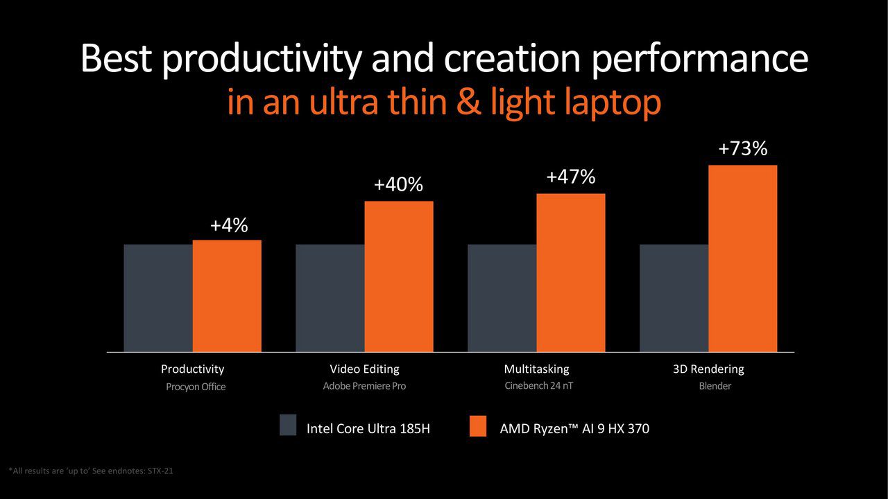 AMD اما در کنار پردازندههای کامپیوتر از تراشههای لپتاپ هم رونمایی کرده است. تراشههایی با نام AI 300 که تمرکز شرکت در ساخت آنها کاملا روی هوش مصنوعی و موتور پردازشگر عصبی بوده است. این تراشهها دو مدل دارند؛ رایزن AI 9 HX 370 و رایزن AI 9 365. مدل اول به مراتب قدرتمندتر از مدل دوم است اما هر دوی آنها تراشههای قدرتمند و ردهبالا به حساب میآیند.