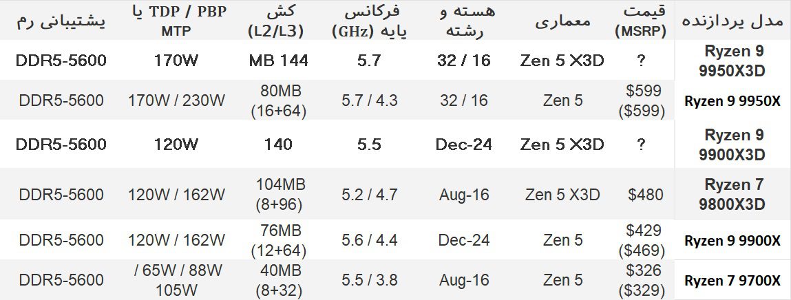 مشخصات پردازنده Ryzen 9 9950X3D و Ryzen 9 9900X3D