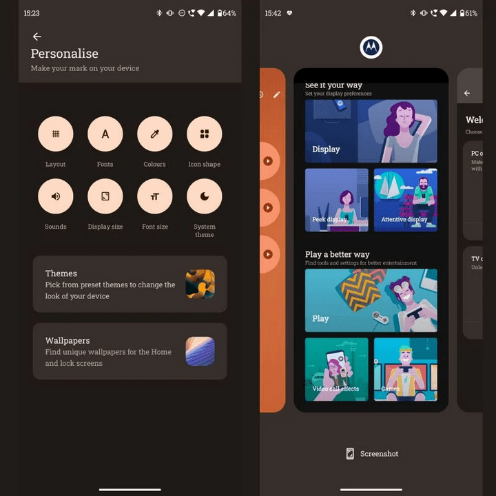 Moto My UX، که اکنون به Hello UI تغییر نام داده است، یکی از رابطهای کاربری شناخته شده است که تجربهای نزدیک به اندروید استاک را ارائه میدهد. این رابط کاربری با ویژگیهایی مانند حالت دسکتاپ ReadyFor، قابلیتهای دوربین Spot Color، و سفارشیسازیهای Material You، تجربهای کاربردی و کاربرپسند را فراهم میآورد. همچنین، Hello UI به خاطر پشتیبانی از ویژگیهای خاص مانند ژستها و عملکرد نمایش، محبوبیت دارد.
