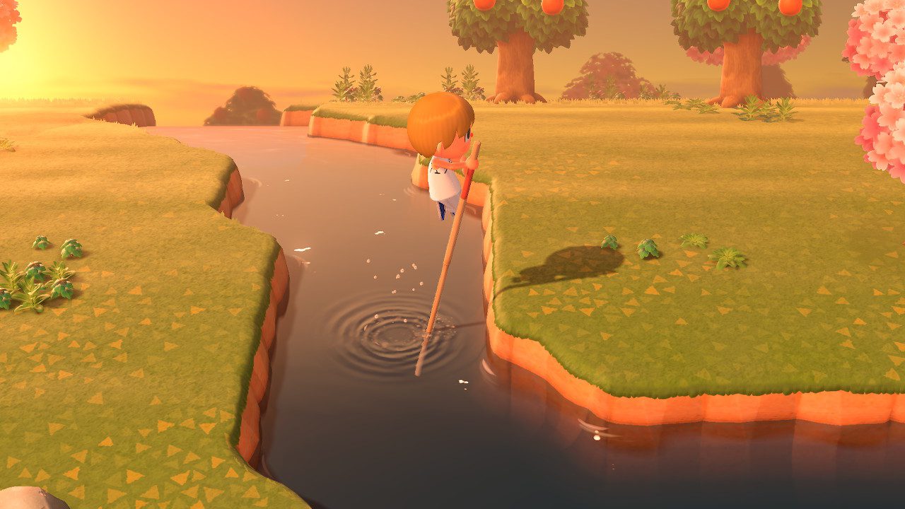 با ساخت برخی تجهیزات اولیه مانند تبر، توری و چوب ماهیگیری به این قابلیت دست پیدا میکنید که به ماهیگیری و شکار پروانهها و حشرات مختلف بپردازید. برخلاف عناوین مشابه مانند Stardew Valley و تمام بازیهایی که دارای مینی گیم ماهیگیری هستند، نیازی به پرتاب طعمه به داخل آب و صبر کردن ندارید. سایهی ماهیها در آب کاملا مشخص است و با عبور از کنار آنها به سرعت میتوانید طعمه را به داخل آب پرتاب کرده و ماهی مورد نظر خود را شکار کنید. برهمین اساس هیچ نیازی به اتلاف وقت و نشستن کنار آب برای گرفتن ماهی ندارید. بیراه نیست اگر بگوییم ماهیگیری در بازی Animal Crossing: New Horizons سادهترین و روانترین نمونه در میان تمامی عناوین بازار است.