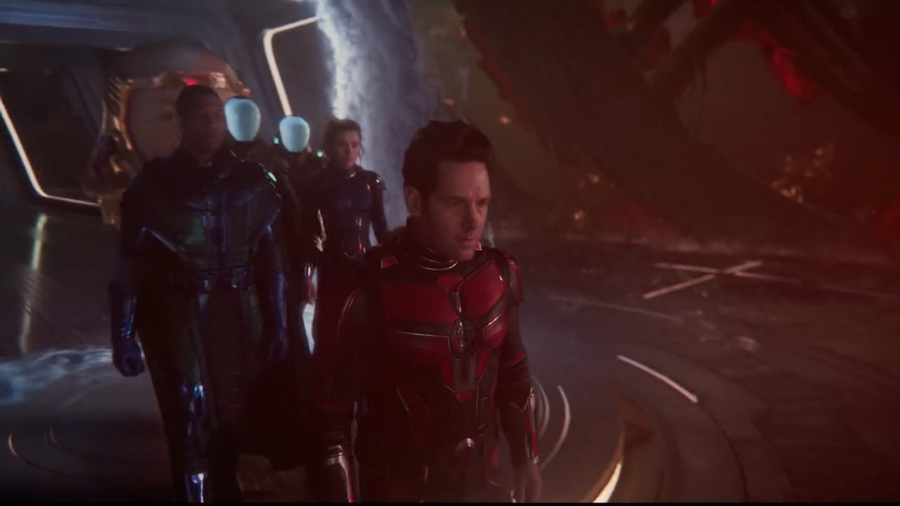 با این حال دقت کنید که ظاهرا این مکان در مرکز خود یک پورتال دارد؛ جایی که کسی لنگ احتمالا آن سوی آن ایستاده و در سکانس بعد میبینیم که او در مقابل این پورتال منتظر پدرش ایستاده است. چهره نگران کسی و هنک پیم گویای ماجراست. به هر حال یک تئوری خاص درباره احتمال مرگ انت من در گذشته هم بیان شده بود و به نظر میرسد که حال امکان دارد که به واقعیت تبدیل شود. در سکانس بعد ما کانگ فاتح را روی یک سکو میبینیم که به نبردی که در مقابل او در حال انجام است خیره شده، اما دقت کنید که همین سکو هم خود شکسته شده و ظاهرا تاسیسات کانگ آسیب دیده است. در این فیلم گروههایی در فضای کوانتوم وجود دارند که ضد کانگ هستند و احتمال دارد که این حمله کار آنها بوده باشد.