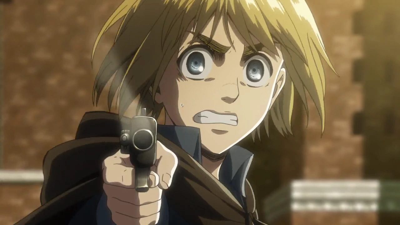 او هم مانند میکاسا، از دوستان کودکی ارن یگار به شمار میرود. وقتی سن و سال چندانی نداشت، پدر و مادرش سعی کردند با ساختن یک بالن هوایی به دنیای بیرون بروند اما نیروهای امنیتی به این موضوع پی برده و آنها را کشتند. بعد از این اتفاق، او با پدربزرگش زندگی کرد؛ فردی که کتابهایی دربارهی دنیای بیرون داشت. خواندن همین کتابها هم باعث شد آرمین تمایل بسیاری برای رفتن به خارج از دیوارها و آشنایی با پدیدههای مختلف به خصوص دریا داشته باشد. او مهارت چندانی در مبارزه ندارد اما از هوش سرشاری برخوردار بوده و در شرایط پیچیده نقشهای کاربردیای میچیند.
