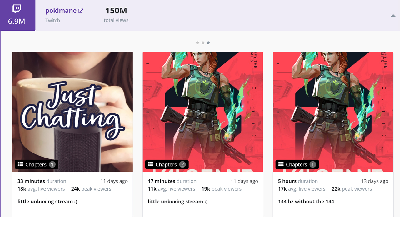 پوکیمین که اصالتا اهل مراکش است، یک دختر استریمر بسیار معروف در توییچ است که با سرعت خیلی زیادی توانست به یکی از مشهورترین شخصیتهای اینترنتی تبدیل شود. او علاوه بر بازدید ۱۵۰ میلیونی خود در توییچ توانسته بیش از ۶.۳ میلیون دنبالکننده در یوتوب جذب کند. پوکیمین اغلب درحال تجربهی عناوینی مثل فورتنایت و League of Legends مشاهده میشود و همچنین کالاهای اختصاصی خود را به صورت اینترنتی به فروش میرساند.