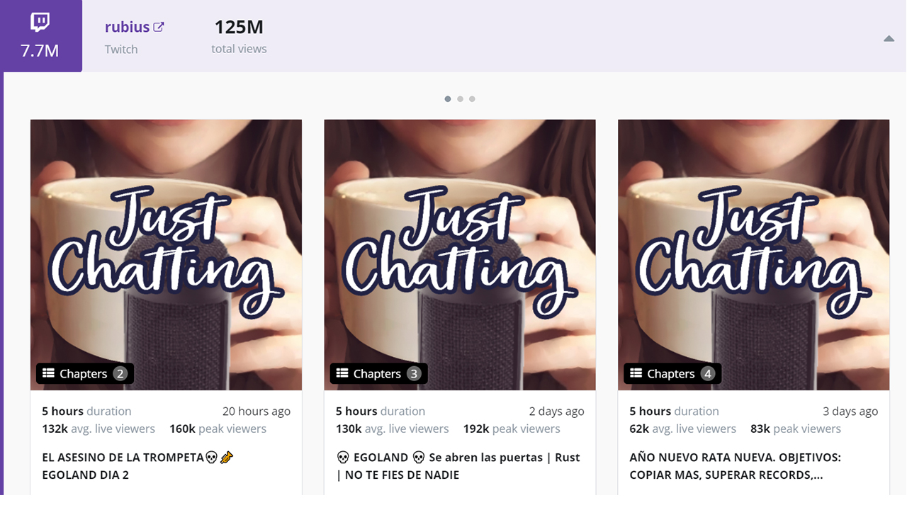 El Rubius یک یوتوبر اسپانیایی – نروژی است که علاوه بر یوتوب در توییچ هم حضور پررنگی دارد. روبیوس در ردهبندی پرطرفدارترین استریمرهای توییچ، مقام سیزدهم را از آن خود کرده و توانسته بیش از ۱۲۵ میلیون بازدید در این پلتفرم استریمینگ به دست آورد. روبیوس به طور کلی عناوین متعددی را در ژانرهای گوناگون تجربه میکند، اما عنوانی که در روزهای ابتدایی فعالیتش توجه بسیاری از مخاطبین را به سمت او جذب کرد، بازی The Elder Scrolls V: Skyrim بود. روبیوس در یوتوب دارندهی یک کانال با بیش از ۳۷.۵ میلیون دنبالکننده به نام elrubiusOMG است و توانسته در این پلتفرم حضور به مراتب چشمگیرتری را نسبت به توییچ از خود نشان دهد.