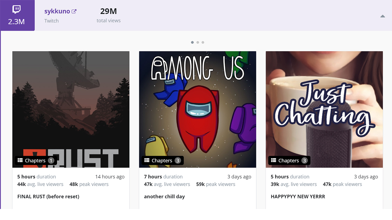 Sykkuno یک استریمر اهل ایالات متحده است که در ابتدا با تولید محتواهای ویدیویی متمرکز روی بازی League of Legends برای یوتوب آغاز به کار کرد. او از سال ۲۰۱۸ فعالیت بیشتری را از خود در پلتفرم توییچ نشان داد و با بازدید ۲۹ میلیونی خود در روزهای اخیر بیشتر با بازی Among Us شناخته میشود. Sykkuno همچنین مدت کوتاهی را صرف همکاری در تولید برنامههای کانال Offline TV مستقر در شهر لوس آنجلس کرد و در کنار استریمرهای معروفی مثل Pokimane دیده شد.