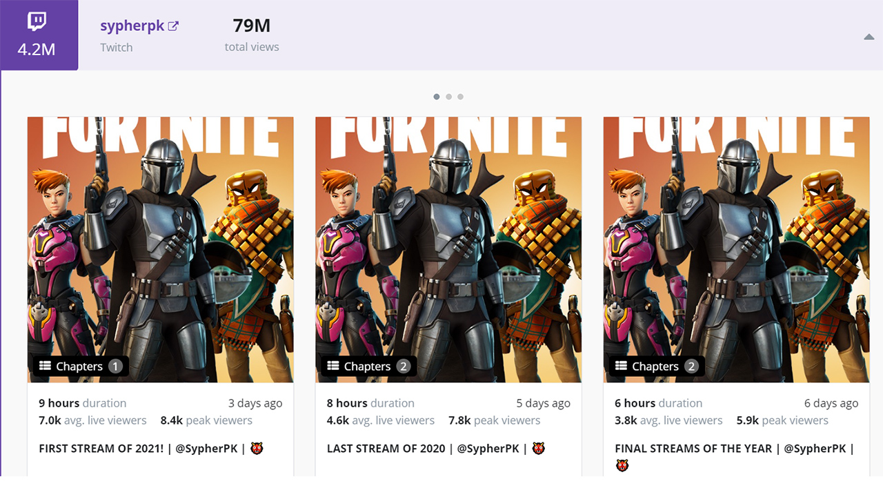 SypherPK که با نام سایفر علی (Sypher Ali) هم شناخته میشود، یک بازیکن حرفهای فورتنایت است که در توییچ مخاطبین بسیار زیادی دارد. سایفر علی همچنین یکی از اعضای تیم لومینوسیتی (Luminosity) است که استریمر شماره یک جهان، نینجا هم یکی از اعضای شناخته شدهی آن محسوب میشود. SypherPK نه تنها با تواناییهای ویدیوگیمی و سبک بسیار حرفهای بازی کردنش در توییچ شناخته شده است، بلکه شهرت بسیار زیادی هم از طریق همکاری با دیگر استریمرها و همچنین فعالیت در یوتوب به دست آورده.