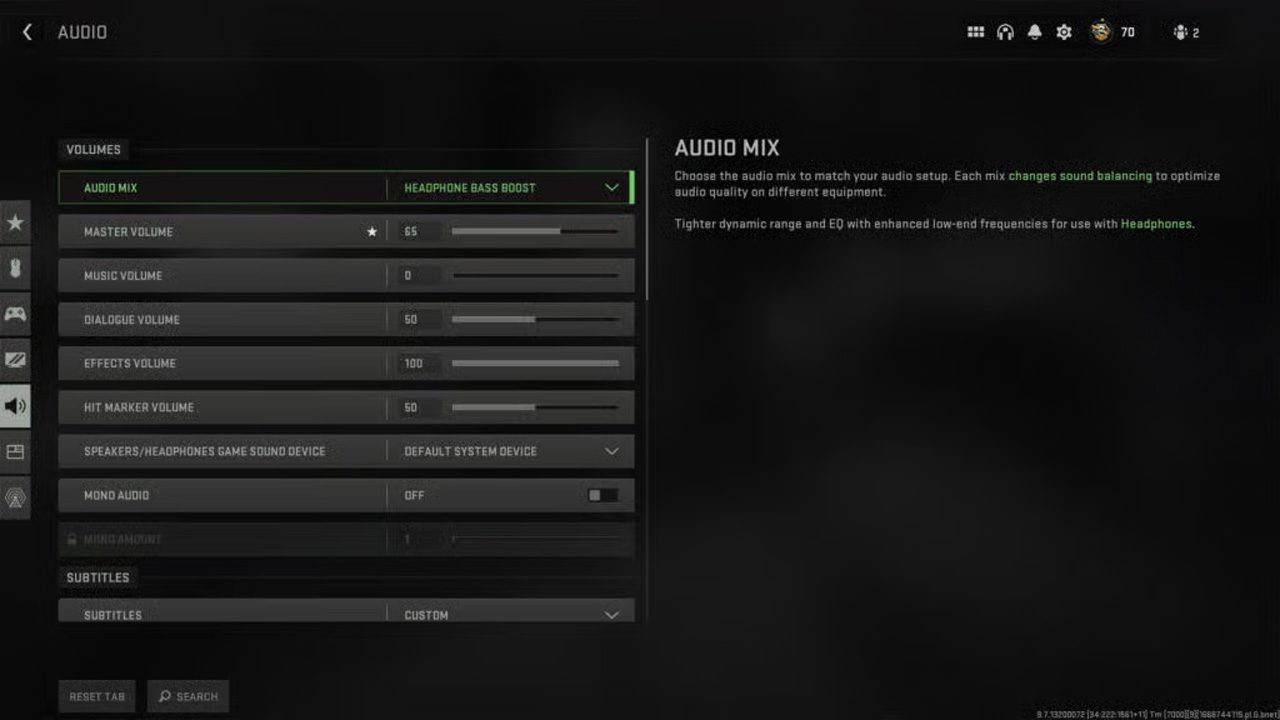 میزان Master Volume بسته به ترجیح شخصی شما میتواند تغییر کند اما توصیه میشود روی 0 قرار بگیرد. زیرنویسها در بازیهای آنلاین معمولاً جملاتی کم اهمیت هستند اما گاهی اوقات اپراتورهای وارزون 2 اطلاعات مهمی میدهند. به همین دلیل، بسته به انتخابتان میتوانید آن را فعال یا غیرفعال کنید.