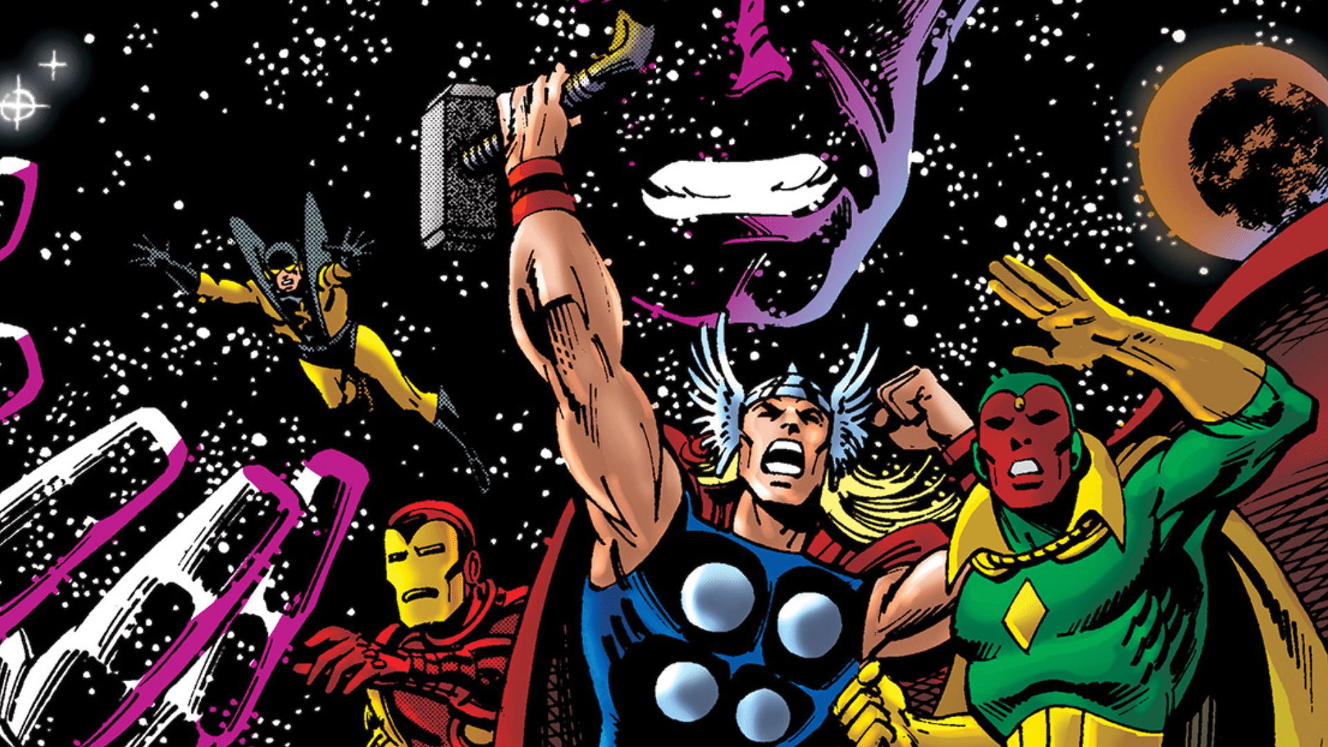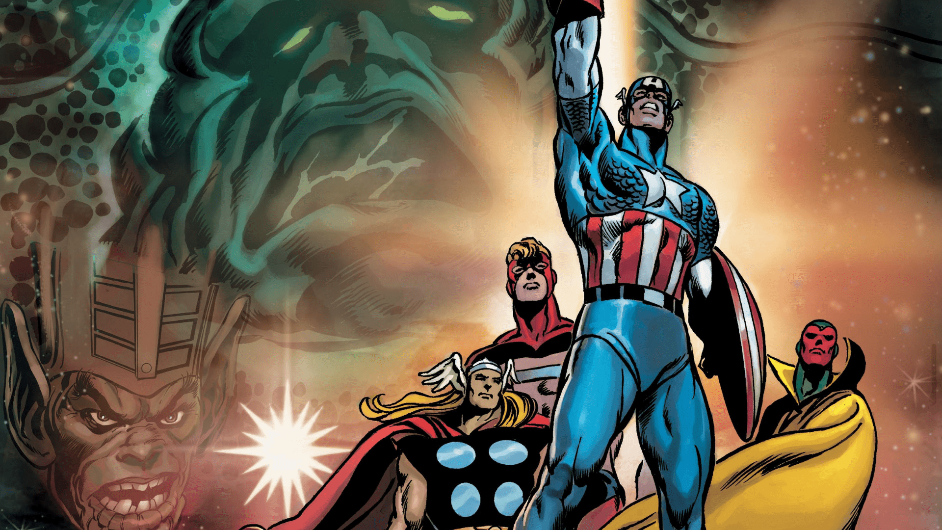 پس از کنار رفتن Stan Lee از مجموعه Avengers، نویسنده Roy Thomas هدایت این عنوان را برعهده گرفت و در ادامه مسیر، بسیاری از عناصر هویتی را بنیان گذاشت که امروزه بخش مهمی از جذابیت این تیم محسوب میشود. او با همکاری هنرمندانی چون Neal Adams و برادران Sal Buscema و John Buscema، روایت گستردهای را در قالب ماجرای موسوم به نبرد Kree و Skrull شکل داد؛ روایتی که زمین را درگیر نزاعی چند هزارساله میان دو امپراتوری قدرتمند فضایی میکرد و تنها نیرویی که میان سیاره و تهدید سلطه بیگانگان میایستاد، گروه قهرمانان نیرومند زمین بود. این دوره نشان داد که دامنه داستانهای Avengers میتواند از سطح تهدیدهای زمینی فراتر رفته و ابعادی جهانی و حتی کیهانی پیدا کند.