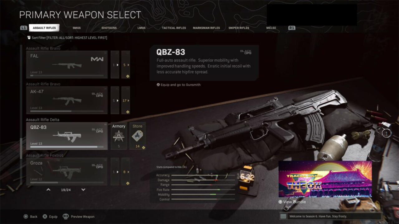 یکی از مهمترین و جذابترین بخشهای وارزون و دو نسخه اخیر سری کالاف دیوتی، بخش شخصی سازی سلاح است که تاثیر بهسزایی در روند این بازی دارد. در این مطلب قصد داریم نگاهی به بهترین Assault Rifleهای فصل شش وارزون داشته باشیم.