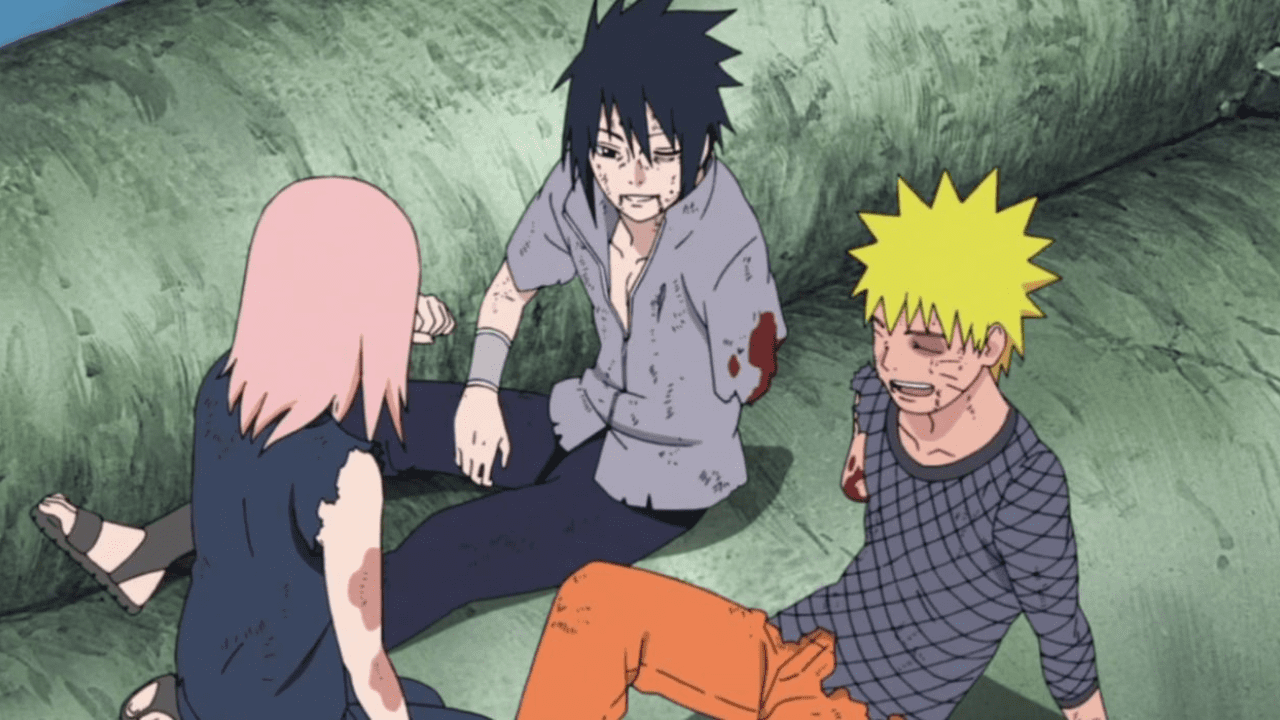 آنها برای مبارزه در برابر یکدیگر میایستند. ساسکه تاوان گناهان خود را میدهد و ناروتو در حالی که او را برای بازگشت به کونوها دعوت میکند، سربند قدیمیاش را با آرم کونوها به ساسکه بازمیگرداند. به نظر میرسد که پایان انیمه ناروتو نمیتوانست زیباتر و شاعرانهتر از صحنه باشد. نهایتا داستان این انیمه زیبا با یکی از جذابترین صحنهها به پایان میرسد.