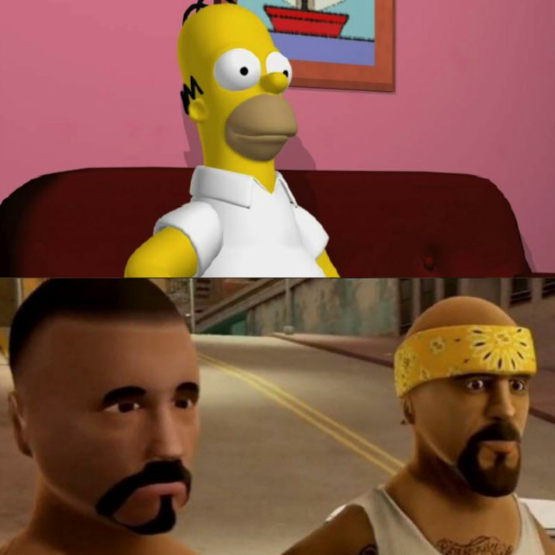 در واقع وقتی که از طراحی بد شخصیتهای بازی ریمستر جی تی ای سن آندرس حرف میزنیم، مشکل فقط داشتن ظاهر خندهدار با کلهای کوچک و بدنی پهن نیست، بلکه اگر دقت کنید، مدل صورت کاراکترها خندهدارتر از چیزی است که فکرش را میکردیم! به عنوان مثال، میتوانید تصویر فوق را در نظر داشته باشید که چهره دو شخصیت این عنوان را با مدل صورت هومر سیمپسون (Homer Simpson) در بازی فوقالعاده قدیمی The Simpsons: Hit And Run مقایسه میکند. نتیجه کار یک شباهت عجیب است نه؟