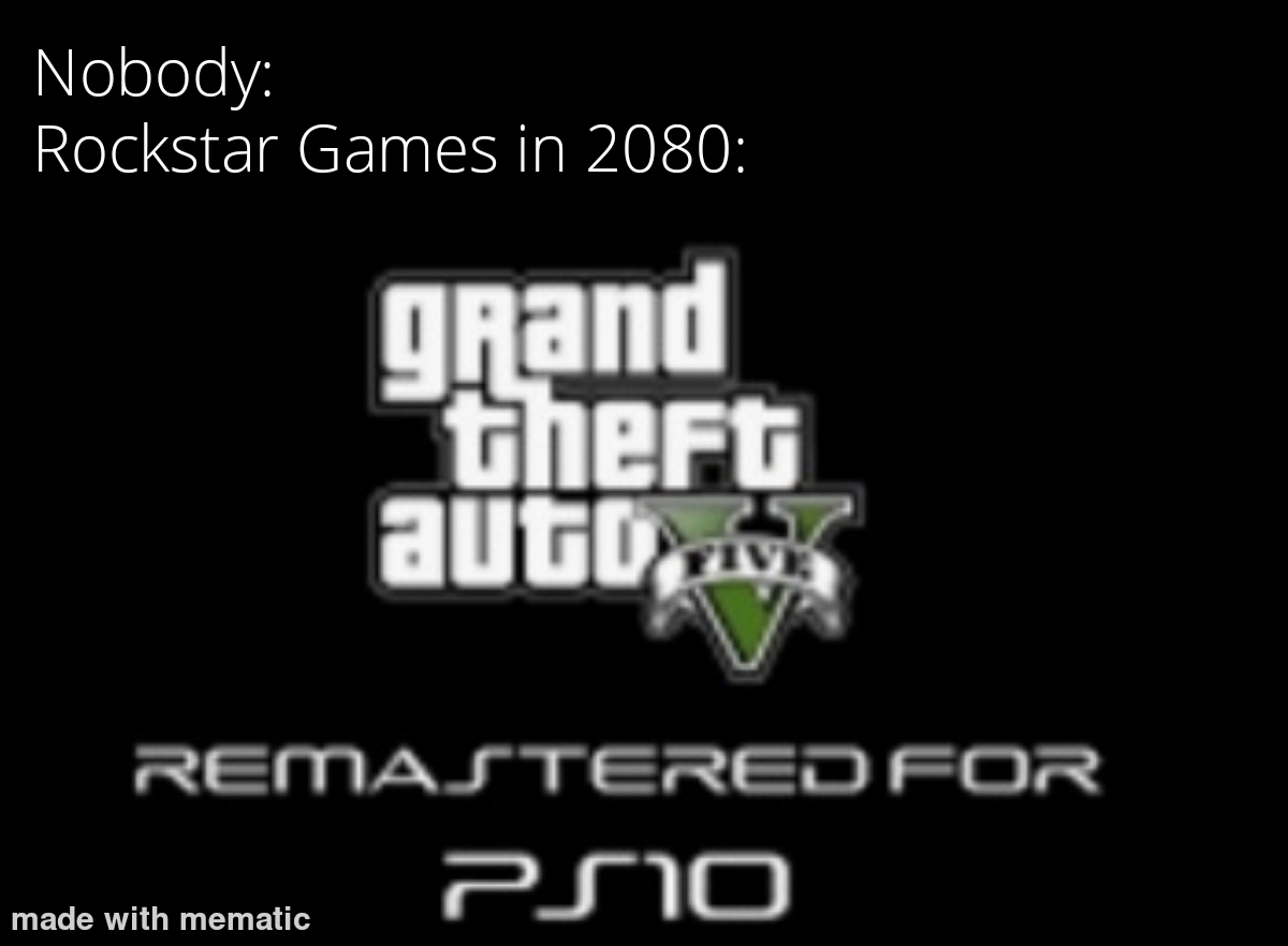 شاید تنها شرکتی که سه بار در سه نسل یک بازی یکسان با همان گیم پلی را معرفی کرده باشد فقط و فقط راکستار گیمز باشد؛ به همین دلیل نیز در تصویر بالا یکی از کاربران پیشبینی ریمستر شدن GTA V برای کنسول پلی استیشن 10 در سال ۲۰۸۰ را کرده است!