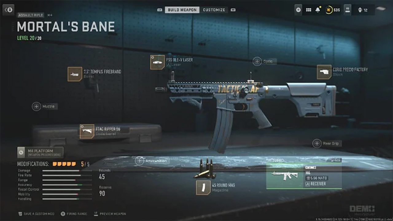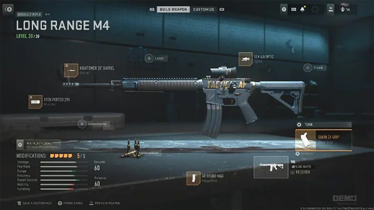 اگر قصد دارید در بازی وارزون 2 دشمنان خود را از فواصل زیاد از پای درآورید، این لودواوت یکی از بهترین گزینهها برای شما خواهد بود. در این لودواوت، Barrel انتخاب شده به شما اجازه وارد کردن ضربههای قوی به دشمنان در فواصل زیاد را میدهد. در ادامه ما با استفاده از Muzzle یاد شده، لگد تفنگ را کاهش میدهیم. به طور کلی این تفنگ کارایی بسیار بالایی در مبارزات دور برد داشته و میتواند تمام خواستههای شما را برآورده کند. نظر شما درباره بهترین لودواوت M4 در وارزون 2 چیست؟ به نظر شما نیز این دو لوداوت بهترین لوداوتهای M4 در وارزون 2 هستند؟ منتظر نظرات و پیشنهادات شما هستیم.