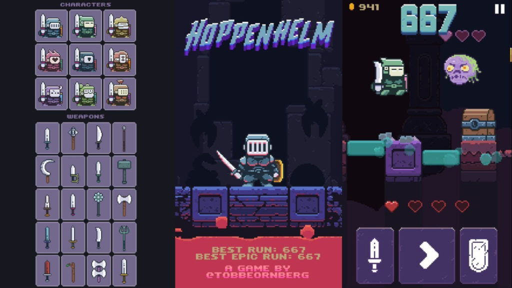 در بازی Hoppenhelm شما باید به کمک شوالیهی نجیب، سِر هوپنهلم بشتابید و او را از مخمصهای که در آن گیر کرده برهانید. سِر هوپنهلم در سیاهچالهای قلعه خودش گم شده است و باید قبل از رسیدن مواد مذاب، با پریدن و دویدن راه خودش را از میان موانع پیدا کند و به قلعهاش بازگردد. هرچه در مسیر جلوتر بروید، گذر از موانع نیز سختتر خواهد شد. بازی Hoppenhelm شخصیتها و سلاحهای مختلفی را در اختیارتان میگذارد تا نهایت لذت را از این بازی ببرید. Hoppenhelm توانسته در اپاستور امتیاز بالای ۴.۶ را از کاربران بگیرد. طراحی این بازی پیکسلی و کلاسیک است و شباهت بسیاری به بازیهای کلاسیک سوپرماریو (از نوع تیره و تاریکش) دارد. میتوانید این بازی را بهصورت رایگان دریافت کنید.