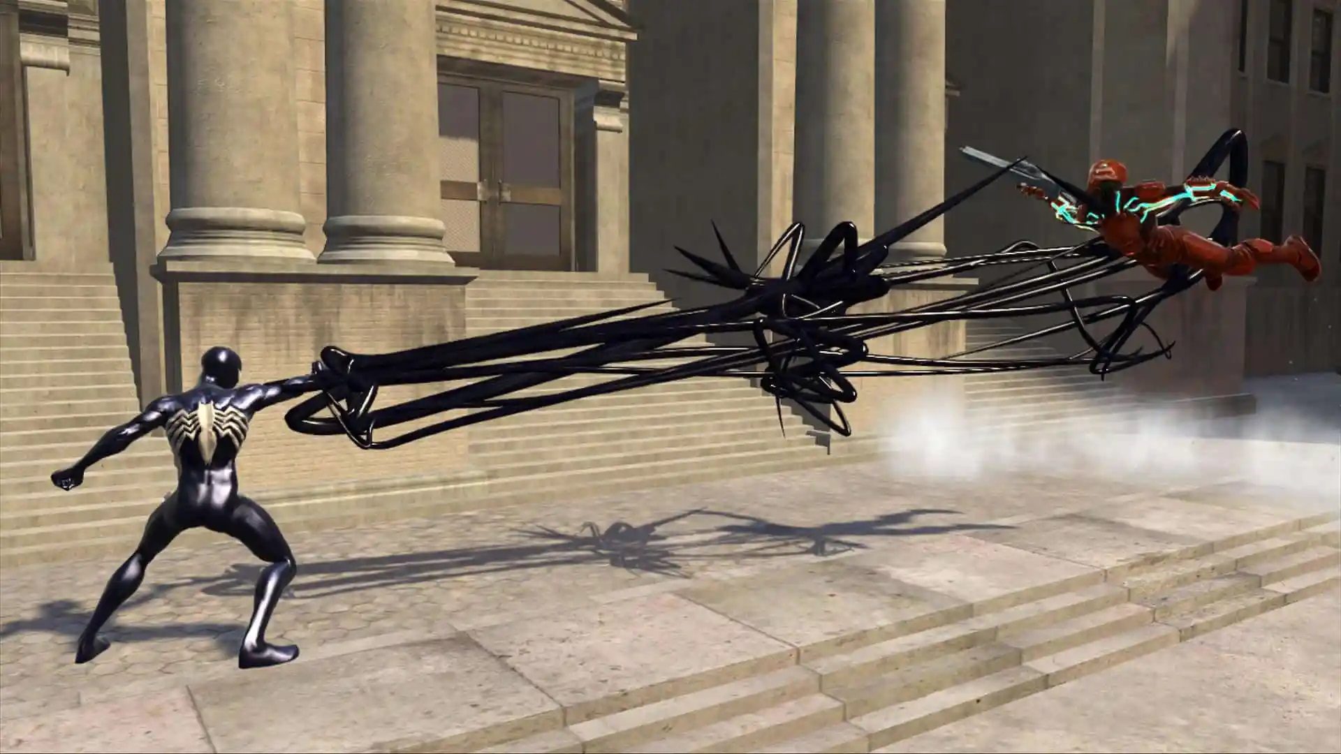تار زدن و گشت و گذار در نقش اسپایدرمن در فضای شهر نیویورک سیتی حس عالی را منتقل کرده اما اضافه شدن شخصیت ونوم به عنوان یک کاراکتر قابل بازی، از Ultimate Spider-Man یک اثر ویژه میسازد. در این بازی پلیر مجبور میشود با استفاده از دشمنان و حتی شهروندان بیگناه عادی به تغذیه ونوم و زنده نگهداشتن او بپردازد در حالی که با استفاده از شاخکهایش از یک ساختمان به ساختمان دیگر میپرد.