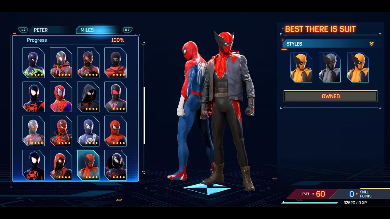 از نظر طراحی لباس، دو قهرمان محبوب دنیای ابرقهرمانان یعنی اسپایدرمن و بتمن معروفترین لباسها را دارند. علاوه بر این دو، لباس ولورین (Wolverine) نیز شهرت خاصی میان طرفداران داشته و بسیار نمادین است. از همین رو توسعه دهندگان ترکیبی جذاب از لباس این شخصیت دوست داشتنی با لباس مرد عنکبوتی را برای ما ارائه دادهاند. این موضوع همچنین میتواند اشارهای مستقیم به دیگر بازی ابر قهرمانی در دست توسعه استودیو اینسامنیاک (Insomniac) یعنی بازی Marvel’s Wolverine دارد.