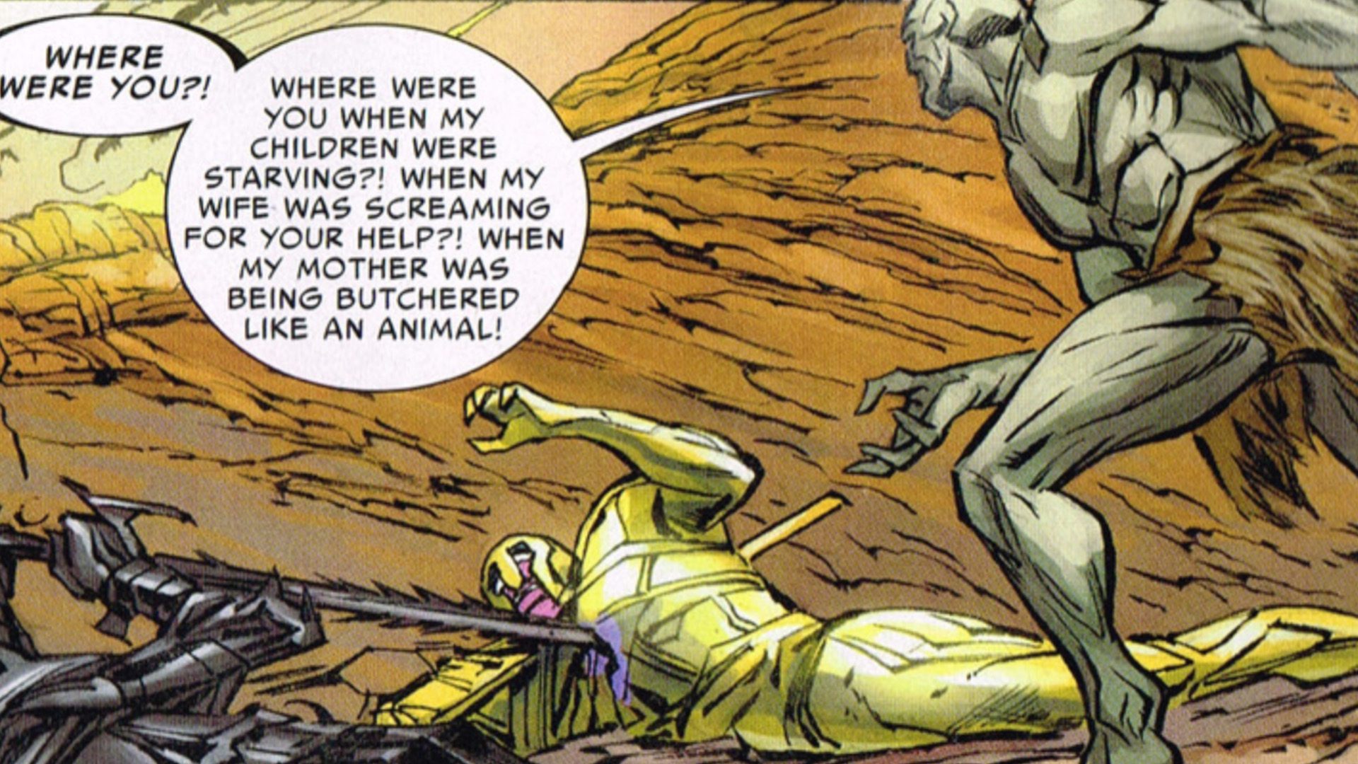 هزاران سال بعد مردمان سیارهی Indignarr دچار خشکسالی میشوند و ثور به سبب دعای دختر کوچکی به این سیاره میرود تا مردم را نجات دهد. ثور از یکی از بزرگان سیاره سوال میکند که چرا از خدایان خودشان درخواست کمکی نکردهاند و ثور را فراخوانده است؟ در جواب میشوند که خدایان آنها سالیان سال است که ناپدید شدهاند و آنان را ملاقات نکردهاند. ثور بعد از بررسی این اتفاق اجساد خدایان این منطقه را در اتاقی زنجیر شده پیدا میکند و متوجه میشود که گور برای کشتار خدایان بازگشته است. در شمارههای بعدی از کمیکهای خدای رعد از مارول، ثور به دنبال گور به غاری میرود که آخرین بار در آن جا او را ملاقات کرده بود. ثور متوجه میشود که شادرک (Shadrak) توسط گور شکنجه میشود و او هنوز زنده است و از خون خدایان برای پر کردن حوض ابدی خود استفاده میکند تا به زمان قبل از پیدایش جهان سفر کند و خدایان را نابود سازد. گور حتی قلب یکی از خدایان را از جا در میآورد و از آن به عنوان جام استفاده میکند.