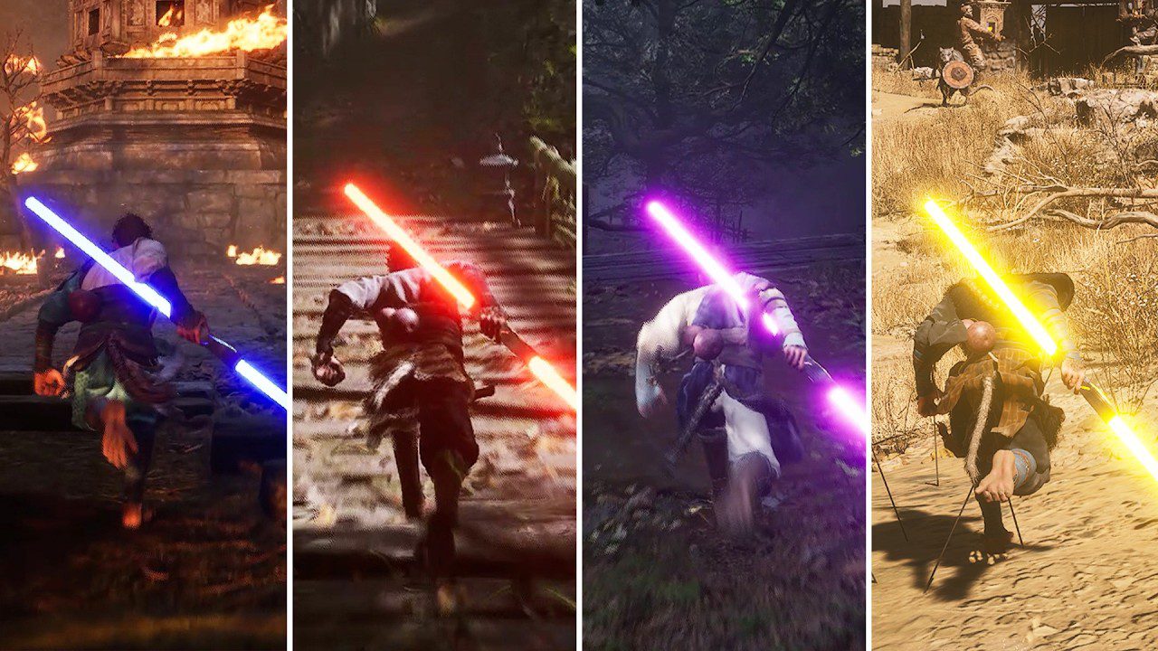ماد Double-Bladed Lightsaber که دنیای دور، دور را به خانه نزدیکتر میکند، سلاح خاص Destined One را با سلاحی مناسب برای Darth Maul جایگزین میکند. در حالی که رنگ قرمز کلاسیک Sith پیشفرض شما است، گزینههای رنگی زیادی برای انتخاب وجود دارد؛ از جمله لیزر بنفش مورد علاقه Mace Windu. این مود همچنین شامل افکتهای صوتی لیزر نیز میشود تا تجربه کاملی را فراهم کند، هرچند شما به زودی اعضای بدن را قطع نخواهید کرد. اگر میخواهید قدمی به سمت تاریکی بگذارید، ماد Darth Maul را بررسی کنید.
