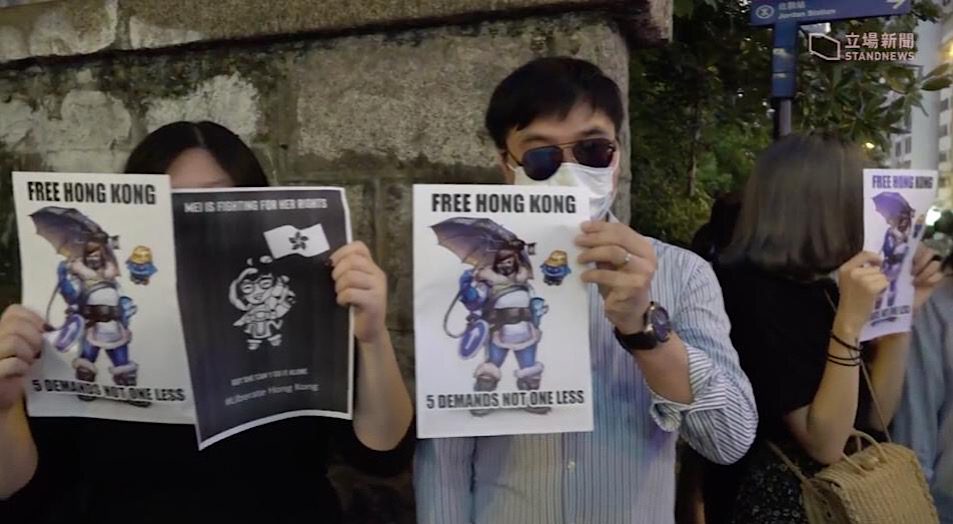 اما اتفاقی که مدتی پیش افتاد، حواشی بلیزارد را وارد مرحلهی جدیدی کرد. یکی از بازیکنان مطرح Hearthstone با نام Ng Wai Chung که با لقب Blitzchung مشهور است، پس از انجام مسابقهی گرندمسترز برای مصاحبه در یک استریم حاضر شد و در انتها عبارت «آزاد باد هنگ کنگ. انقلاب عصر ما!» را فریاد زد که در اعتراض به اقدامات حکومت چین بود. شرکت بلیزارد در قوانین خود، عنوان کرد که هرگونه اعتراض سیاسی یا اعلام طرفداری از یک گروه یا حزب خاص در مسابقات ممنوع است. در نتیجهی این اقدام بلیتزچانگ، بلیزارد او را به مدت یک سال از شرکت در رقابتهای هارتاستون منع کرد و جایزهی مسابقات هم از او گرفته شد. این شرکت اما فکرش را نمیکرد که این مجازات سنگین چه پیامدی خواهد داشت. پس از اعلام رسمی موضوع، افراد بسیاری در ردیت، فرومهای گیمینگ و شبکههای اجتماعی اعتراض شدید خود را نسبت به آن نشان دادند. عدهی زیادی بازیهای بلیزارد را پاک کردند و با هشتگ #BoycottBlizzard خشم خود را در توییتر عمومی کردند. حجم مخالفتها و اعتراضات به قدری زیاد بود که سابردیت هارتاستون در ردیت به کل بسته شد. این قضایا حتی روی خود تظاهرات هنگ کنگ هم تاثیر گذاشت و تابلوهایی دیده شد که در آنها تصویر هیروی Mei از اورواچ به چشم میخورد. در نهایت هم بلیزارد نتوانست این بار را تحمل کند و با انتشار بیانیهای، از کاهش محرومیت بلیتزچانگ به شش ماه و بازگرداندن جایزهی او خبر داد. همین الان که در حال خواندن این متن هستید احتمالا بلیزارد افراد بیشتری را هم جریمه کرده است. در طی یک هفته پس از این قضایا، بازیکنان دیگری هم اعتراض خود را به مجازات بلیتزچانگ نشان دادند که همگی طبق قوانین جریمه شدند.