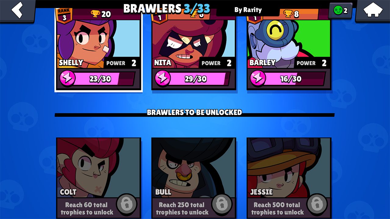 در Brawl Stars تعداد ۳۳ کاراکتر جنگجو در کلاسهای مختلف، با تواناییهای متفاوت وجود دارند که هرچه لیگ خود را بالاتر ببرید، میتوانید به تعداد بیشتری از آنها دسترسی داشته باشید.