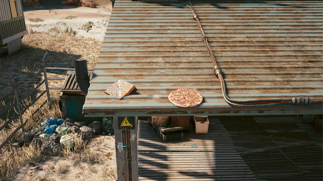 ایستراگ بریکینگ بد در Cyberpunk 2077 اولین مرتبه توسط کاربری با نام AmericaLover1776 در شبکه اجتماعی ردیت به انتشار رسید و بسیاری کاربران تایید کردند که پیتزا روی گاراژ، اشاره مستقیم به سریال محبوب بریکینگ بد است. اگر سریال بریکینگ بد را تماشا کرده باشید، به خاطر دارید که شخصیت اصلی سریال یعنی والتر وایت (Walter White) در فصل سوم پس از مشاجره با همسر خود، پیتزا را به پشت بام خانه خود پرتاب کرده و پیتزا همان جا باقی میماند. تا به حال ایستراگهای بسیاری در بازی سایبرپانک ۲۰۷۷ کشف شده و کاربران باور دارند که ایستراگهای دیگری نیز در این بازی وجود دارد.