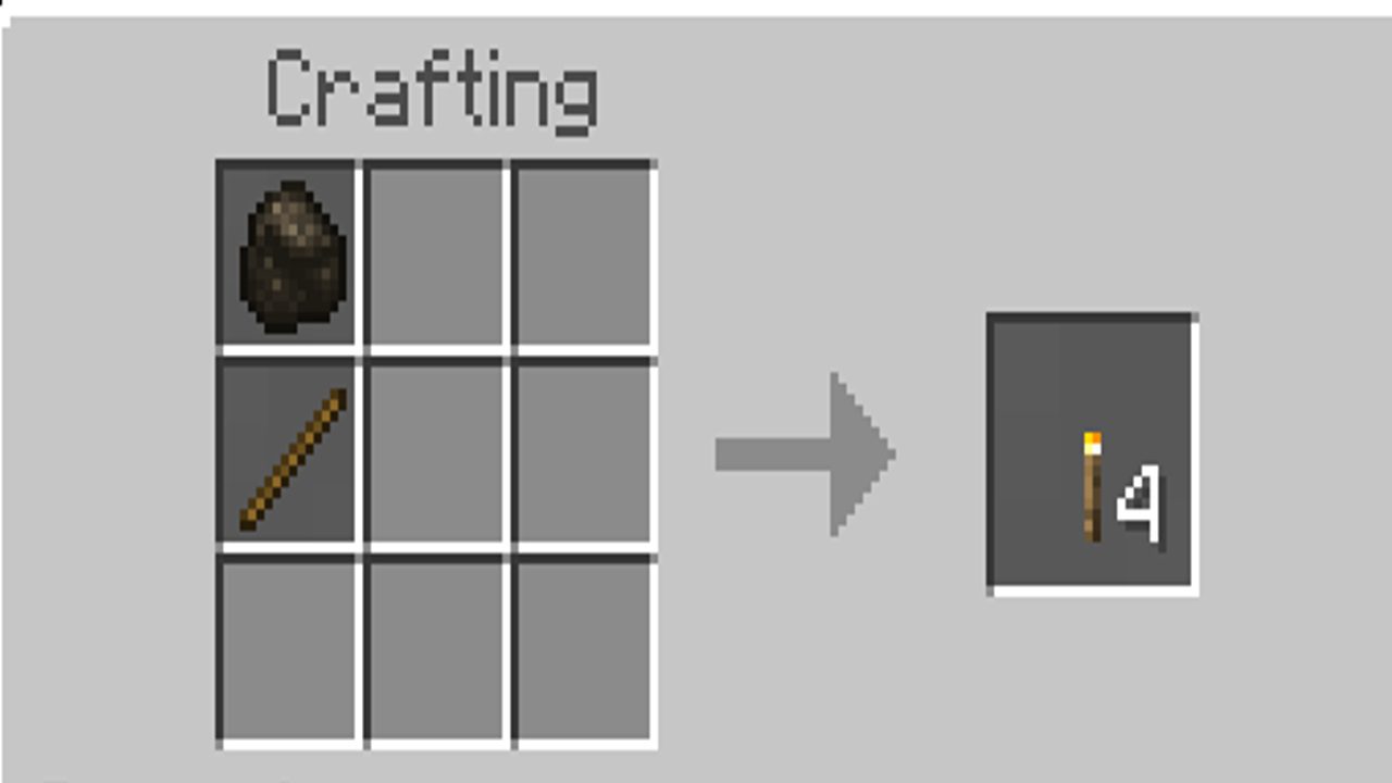 دو روش متفاوت برای ساخت مشعل وجود دارد، اما برای ساده نگه داشتن کار، بهتر است از هر نوع کنده چوب (Wood Logs) استفاده کنید. به سراغ کورهای که در خانهتان قرار دادهاید بروید و چوب را هم در شکاف بالا و هم در شکاف پایین قرار دهید. این کار فرآیند تولید زغال چوب (Charcoal) را آغاز میکند. وقتی احساس کردید به اندازه کافی زغال چوب تولید کردهاید، مقداری چوبدستی (sticks) بردارید و هم چوبدستی و هم زغال چوب را در یک شکاف خالی صفحه ساخت قرار دهید تا مشعل (Torches) بسازید.