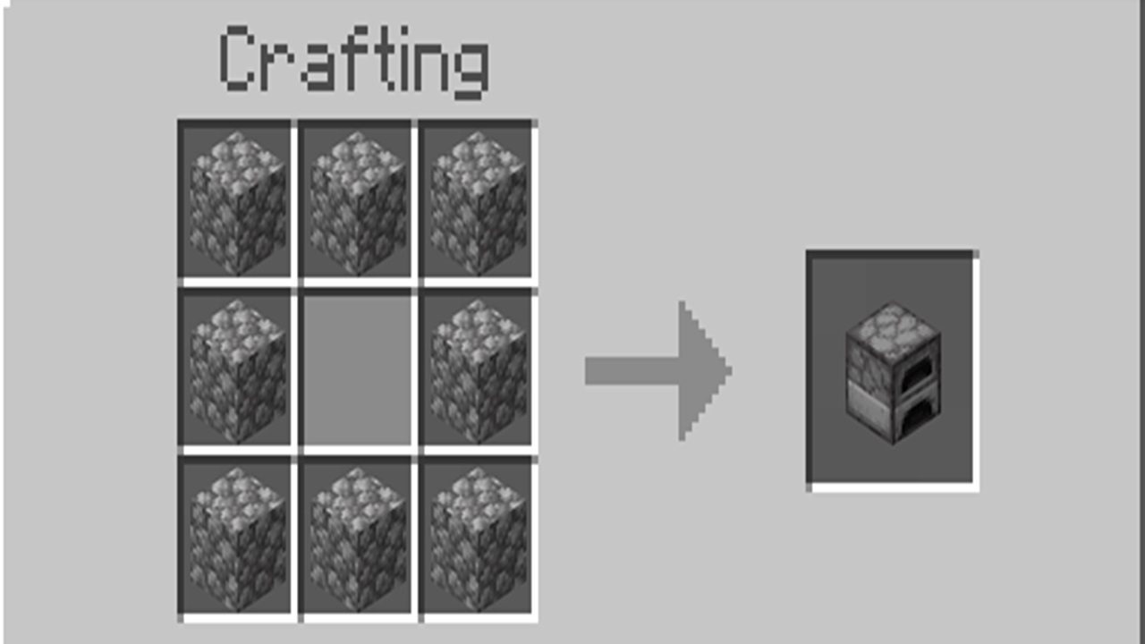 پس از ساخت یکی از هر ابزار چوبی، ابتدا باید از کلنگ چوبی (Wood Pickaxe) برای استخراج سنگ کوبیده استفاده کنید. سنگ کوبیده را میتوان به راحتی در همه جا پیدا کرد. اگر در پیدا کردن آن مشکل دارید، فقط کافی است به پایین حفاری کنید و پس از تخریب چند بلوک خاک، به آن برخورد خواهید کرد. شما فقط نیاز دارید در مجموع هشت سنگ کوبیده جمعآوری کنید، اما داشتن چند عدد اضافه هم ضرری ندارد. حالا که سنگهای کوبیده را دارید، آنها را روی میز ساخت قرار دهید و هشت بلوک را در منوی ساخت بگذارید تا یک کوره (Furnace) بسازید.