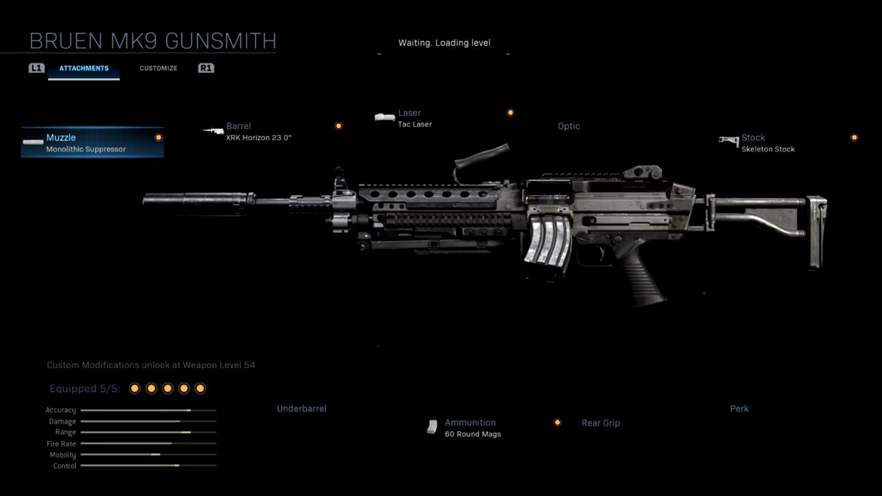 اگر از طرفداران سلاحهای بزرگ و سنگینی هستید که قدرت آتش بسیاری زیادی دارند، Bruen MK9 از کلاس LMG برای شما ساخته شده است. این سلاح دوستداشتنی که از فصل پیش به بازی اضافه شده، به سادگی بهترین LMG وارزون است. MK9 بهطور پیشفرض لگد بسیار کمی دارد و کنترل آن راحت است. بزرگترین مزیت این سلاح در مقایسه با رقیب همردهای چون PKM، امکان استفاده از خشاب ۶۰ گلولهای است که سرعت ریلود، ADS و جابهجایی آن را شدیدا افزایش میدهد تا به یکی از بهترین سلاحهای سنگین بازی بدل شود. افزونههای کارآمد:
