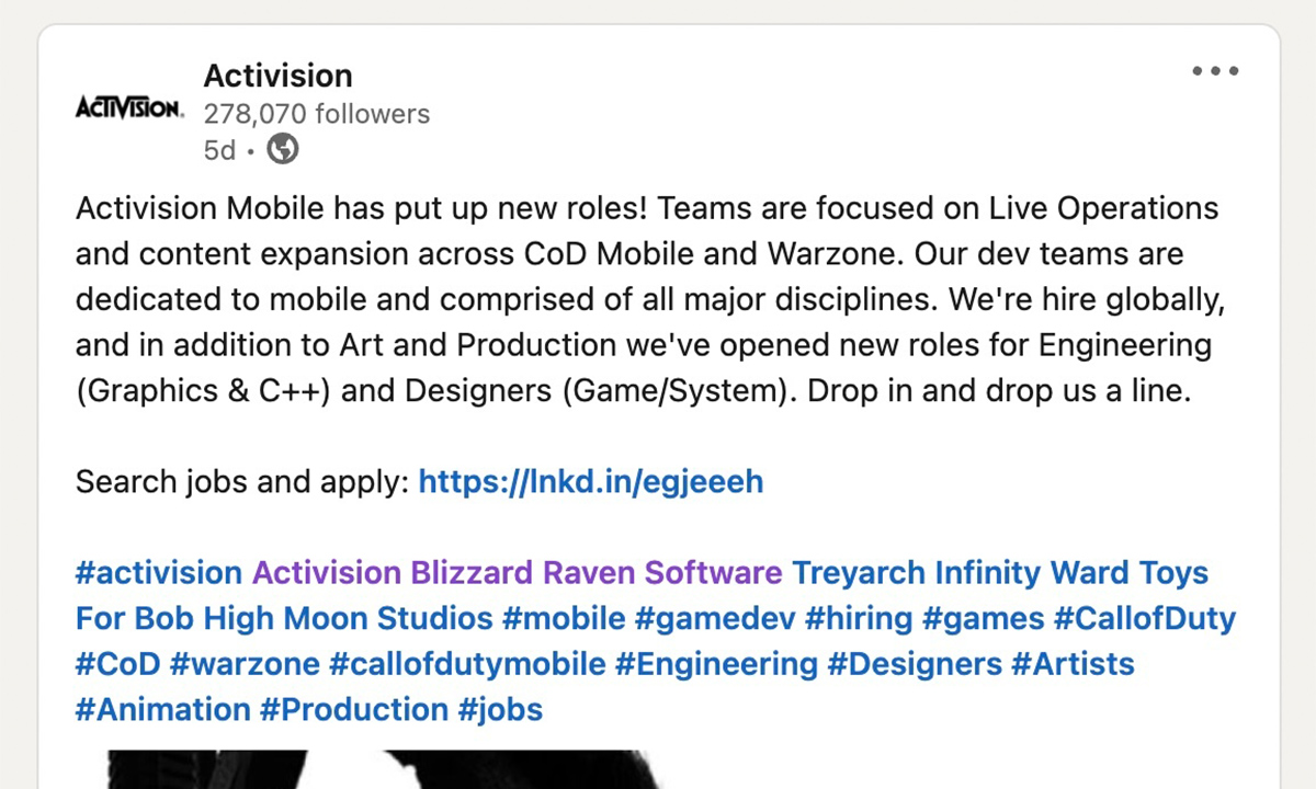اکتیویژن در لینکدین بیدقتی کرد!