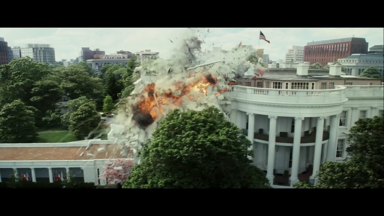 سم ویلسون در یکی از صحنههای تریلر داخل راهرویی تاریک قرار داشته و سپر خود را به سمت دوربین پرتاب میکند. نمای بعدیای که میبینیم، نابود شدن ساختمان کاخ سفید از سمت چپ است. قرار گرفتن دو صحنه مزبور در کنار هم این حس را تداعی میکند که پرتاب سپر کاپیتان آمریکا باعث تخریب ساختمان میشود.