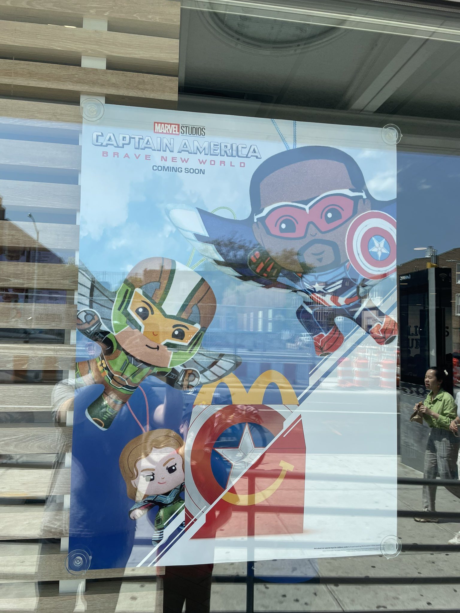 اکانت QuidVacuo در شبکه اجتماعی ایکس (توییتر سابق) اخیراً تصاویری را از یک شعبه مک دونالد تهیه کرده که در پشت شیشهاش پوستری نصب شده است؛ پوستری که به لطف آن میتوان ظاهر کاپیتان آمریکا، فالکون، سانگ برد، سابرا و رد هالک در Captain America 4 را مشاهده کرد. نکته جالب اینجاست که طبق تصویر، ژنرال تاندربولت پس از تبدیل شدن به رد هالک همچنان سبیل را روی صورت خود دارد. در ضمن، نسخه باکیفیت دو تصویری که قبلاً به فضای مجازی آمده بودند، حالا در دسترس قرار گرفتهاند: