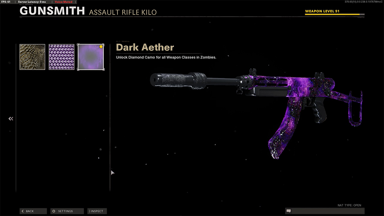 این اسلحه جدید که Vargo 52 نامیده شده، به وسیله دریافت ۱۰۰۰ دمیج پوینت در ۱۵ بازی در عنوان Call of Duty Modern Warfare آزاد میشود! پس از پشت سر گذاشتن این چالش شما میتوانید از اسلحه Vargo 52 در بازی Black Ops Cold War استفاده کنید. این شاید عجیبترین چالش تاریخ سری بازی کالآف دیوتی محسوب شود. ناگفته نماند که برخی کاربران حتی اسکین Dark Aether را نیز برای این اسلحه بازگشایی کردهاند!