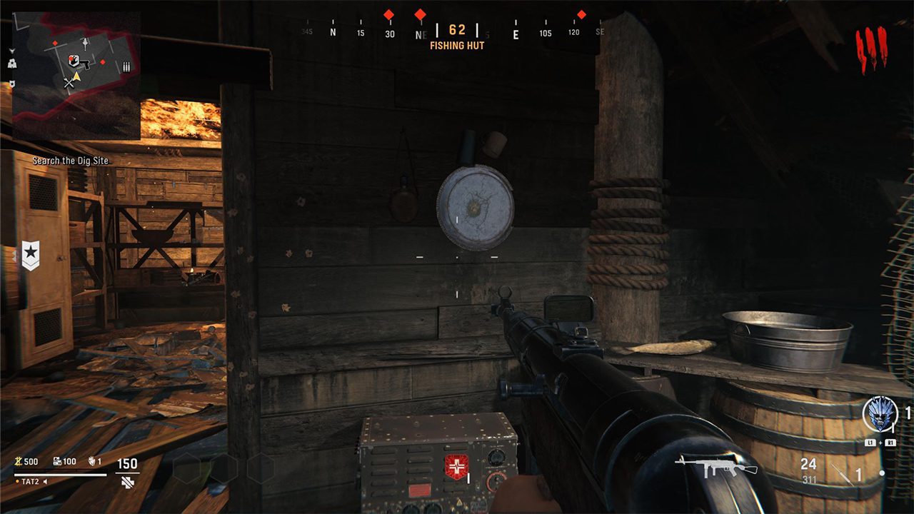 برای فعال سازی این ایستر اگ، شما ابتدا باید به کلبه ماهیگیری (Fishing Hut) در نقشه رفته به هر چهار ماهیتابه درون کلبه شلیک کنید. اگر پاد ساعت گرد در کلبه حرکت کرده و ابتدا سمت راست خود را نگاه کنید، ماهیتابه اول را مشاهده میکنید. پس از آن وارد اتاق شده و سمت چپ خود را نگاه کنید تا ماهیتابه دوم را مشاهده کنید. به مسیر خود که ادامه دهید، ماهیتابه سوم را روبه روی خود میبینید و اگر هنوز به حرکت پاد ساعت گرد خود ادامه داده باشید، سمت چپ شما چهارمین و آخرین ماهیتابه دیده میشود. ماهیتابه چهارم بالای چند جعبه قرار دارد.