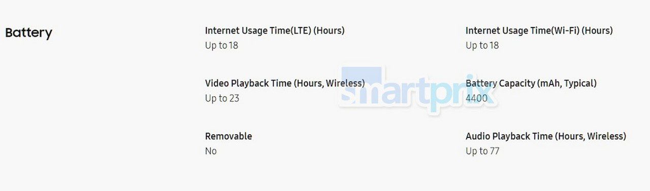 در سایر بخشهای مشخصات فنی گلکسی زد فولد 6 به نظر نمیرسد تفاوت چشمگیری را شاهد باشیم. این گوشی یک باتری 4400 میلیآمپر ساعتی خواهد داشت که به نظر میرسد از شارژر 45 واتی پشتیبانی میکند. طبق لیستی که در اختیار داریم، این باتری در استفاده از اینترنت همراه و وایفای، تا 18 ساعت دوام دارد که عدد خوبی به حساب میآید. همچنین از لحاظ پخش ویدیو هم شاهد ماندگاری 23 ساعتهی آن خواهیم بود. بهترین عملکرد این گوشی مربوط به پخش صوتی است که دوامش در این زمینه به 77 ساعت میرسد. وایفای 6، بلوتوث 5.3، اینترنت 5G و USB 3.2 نسل 1 هم بخش اتصالات آن را تشکیل میدهند.